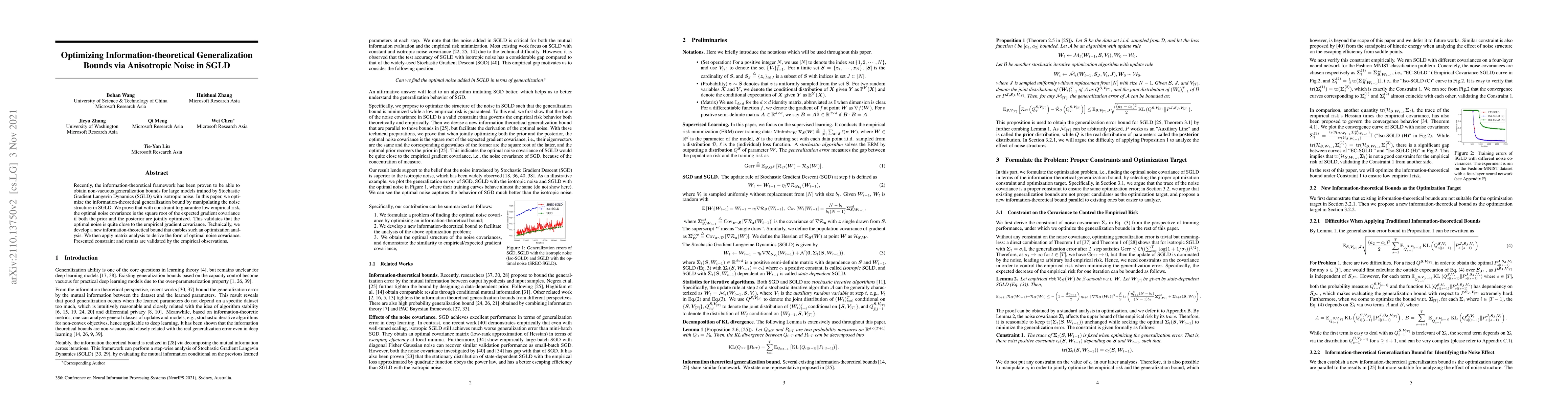 This paper optimizes information-theoretical generalization bounds for Stochastic Gradient Langevin Dynamics (SGLD) by adjusting the noise structure. It proves that optimal noise covariance is the square root of the expected gradient covariance when both prior and posterior are jointly optimized, validated through empirical observations.
