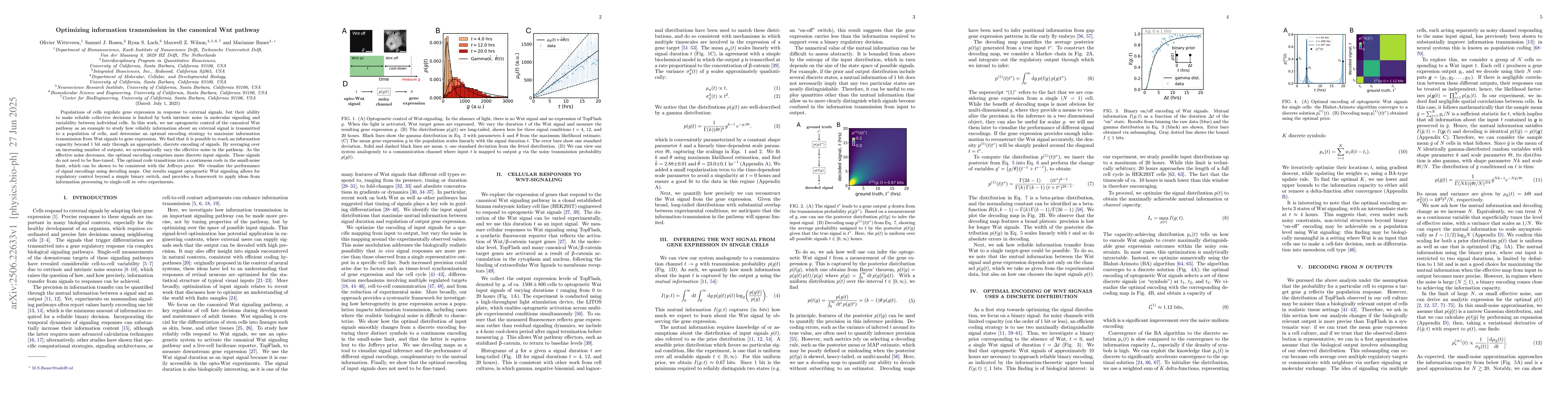 Populations of cells regulate gene expression in response to external signals, but their ability to make reliable collective decisions is limited by both intrinsic noise in molecular signaling and variability between individual cells. In this work, we use optogenetic control of the canonical Wnt pathway as an example to study how reliably information about an external signal is transmitted to a population of cells, and determine an optimal encoding strategy to maximize information transmission from Wnt signals to gene expression. We find that it is possible to reach an information capacity beyond 1 bit only through an appropriate, discrete encoding of signals. By averaging over an increasing number of outputs, we systematically vary the effective noise in the pathway. As the effective noise decreases, the optimal encoding comprises more discrete input signals. These signals do not need to be fine-tuned. The optimal code transitions into a continuous code in the small-noise limit, which can be shown to be consistent with the Jeffreys prior. We visualize the performance of signal encodings using decoding maps. Our results suggest optogenetic Wnt signaling allows for regulatory control beyond a simple binary switch, and provides a framework to apply ideas from information processing to single-cell in vitro experiments.