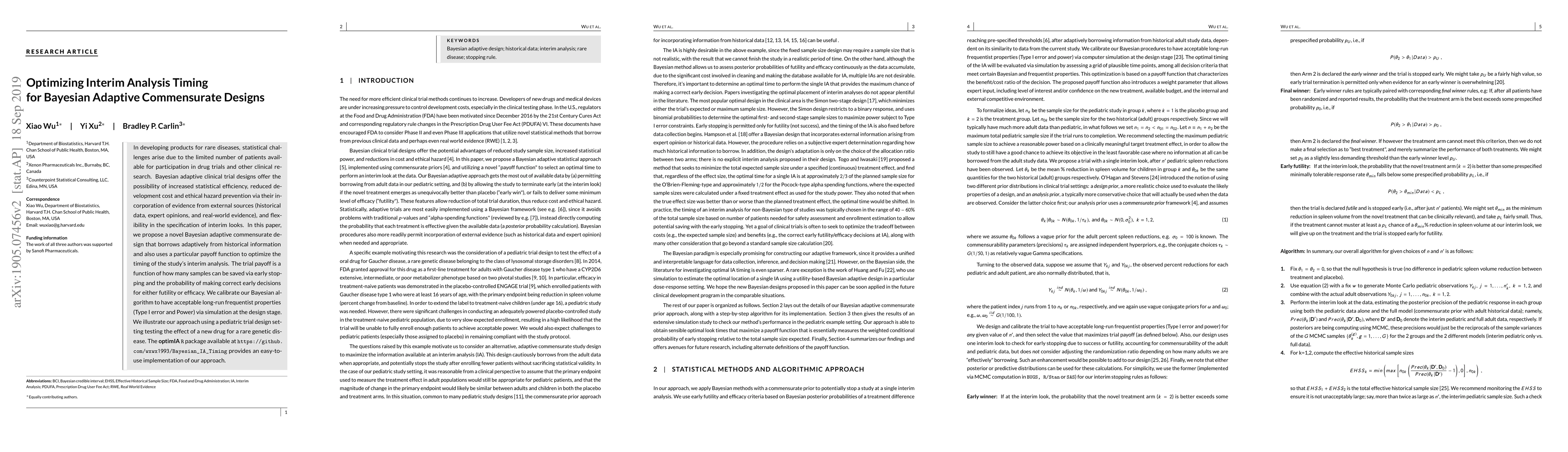 This work distinguishes itself by focusing on optimizing interim analysis timing in Bayesian adaptive designs for rare disease trials, using a commensurate approach that considers both historical data borrowing and a carefully calibrated payoff function.