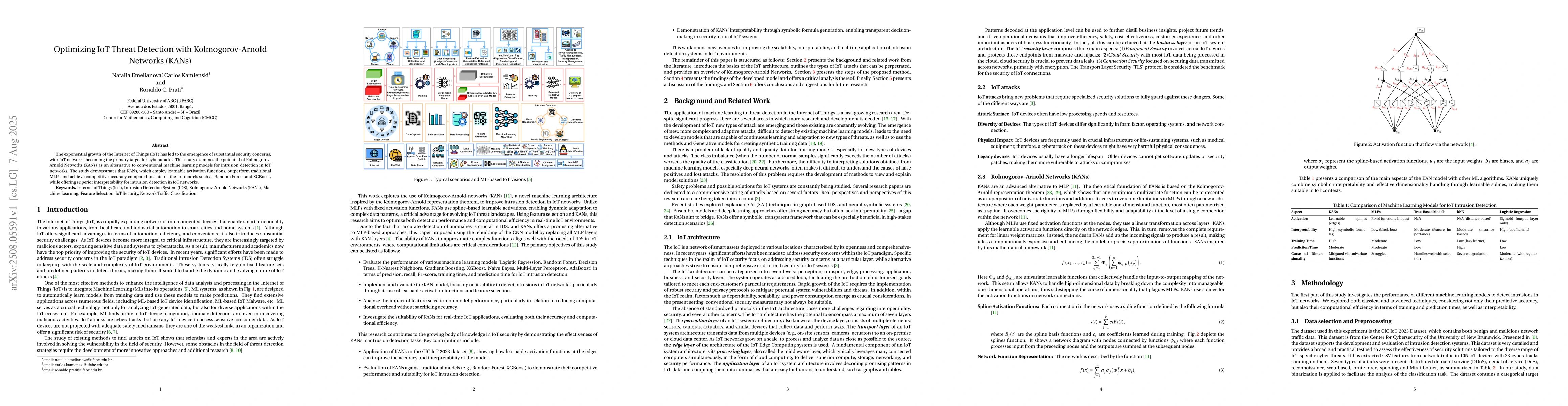 The exponential growth of the Internet of Things (IoT) has led to the emergence of substantial security concerns, with IoT networks becoming the primary target for cyberattacks. This study examines the potential of Kolmogorov-Arnold Networks (KANs) as an alternative to conventional machine learning models for intrusion detection in IoT networks. The study demonstrates that KANs, which employ learnable activation functions, outperform traditional MLPs and achieve competitive accuracy compared to state-of-the-art models such as Random Forest and XGBoost, while offering superior interpretability for intrusion detection in IoT networks.