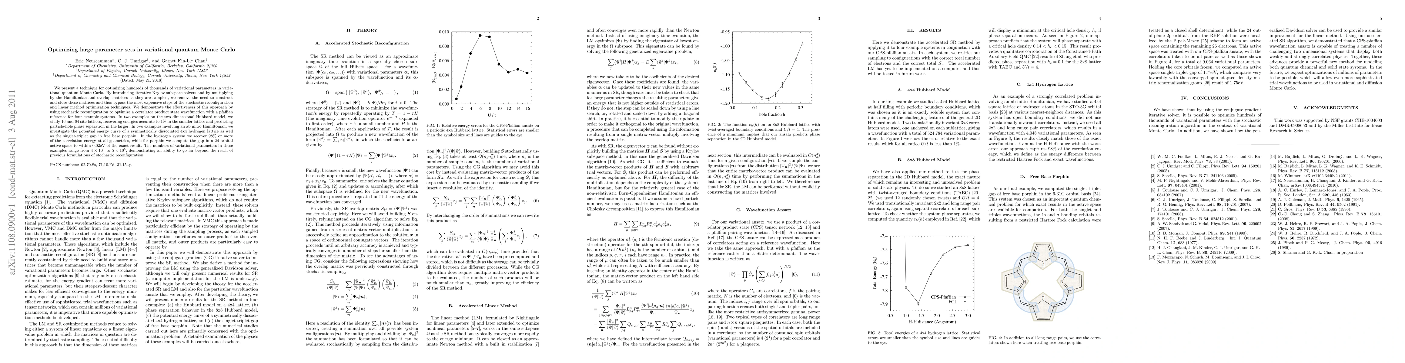 We present a technique for optimizing hundreds of thousands of variational parameters in variational quantum Monte Carlo. By introducing iterative Krylov subspace solvers and by multiplying by the Hamiltonian and overlap matrices as they are sampled, we remove the need to construct and store these matrices and thus bypass the most expensive steps of the stochastic reconfiguration and linear method optimization techniques. We demonstrate the effectiveness of this approach by using stochastic reconfiguration to optimize a correlator product state wavefunction with a pfaffian reference for four example systems. In two examples on the two dimensional Hubbard model, we study 16 and 64 site lattices, recovering energies accurate to 1% in the smaller lattice and predicting particle-hole phase separation in the larger. In two examples involving an ab initio Hamiltonian, we investigate the potential energy curve of a symmetrically dissociated 4x4 hydrogen lattice as well as the singlet-triplet gap in free base porphin. In the hydrogen system we recover 98% or more of the correlation energy at all geometries, while for porphin we compute the gap in a 24 orbital active space to within 0.02eV of the exact result. The numbers of variational parameters in these examples range from 4x10^3 to 5x10^5, demonstrating an ability to go far beyond the reach of previous formulations of stochastic reconfiguration.