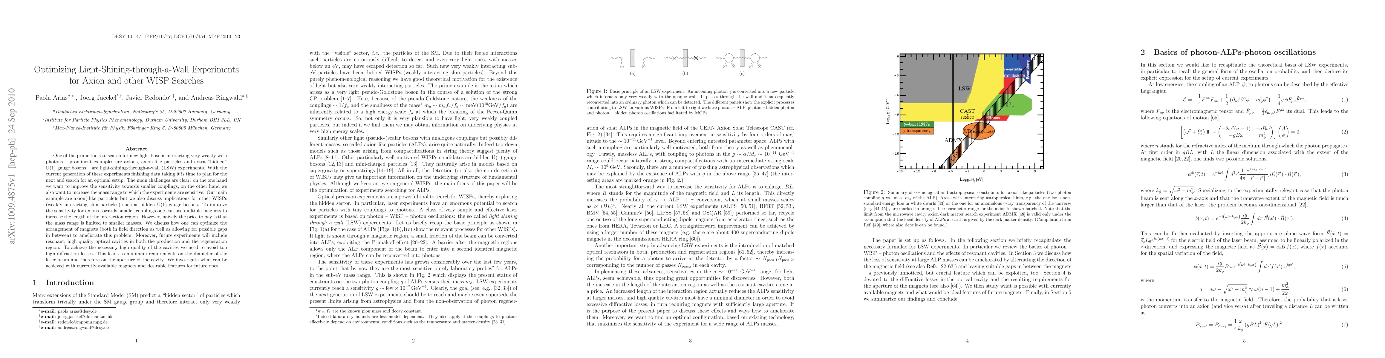This paper discusses optimizing light-shining-through-a-wall (LSW) experiments for detecting axions and other weakly interacting slim particles (WISPs). It proposes using multiple magnets to enhance sensitivity to smaller couplings while addressing the challenge of limiting mass range, and suggests incorporating resonant optical cavities to minimize diffraction losses and improve experimental setup.