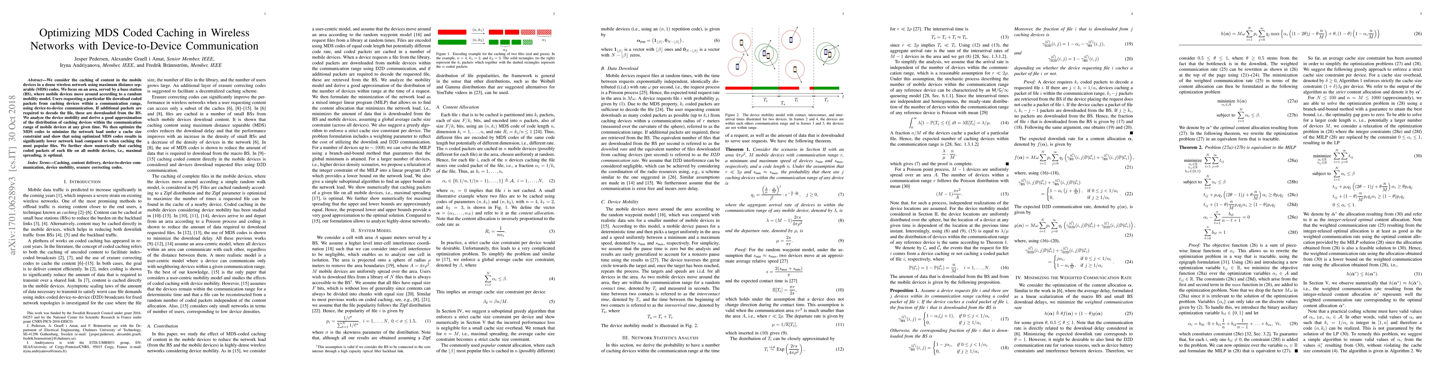 This paper optimizes MDS coded caching in dense wireless networks utilizing device-to-device communication, showing that optimized MDS codes significantly reduce network load compared to caching popular files. Maximal spreading of coded packets across all mobile devices is found to be optimal.