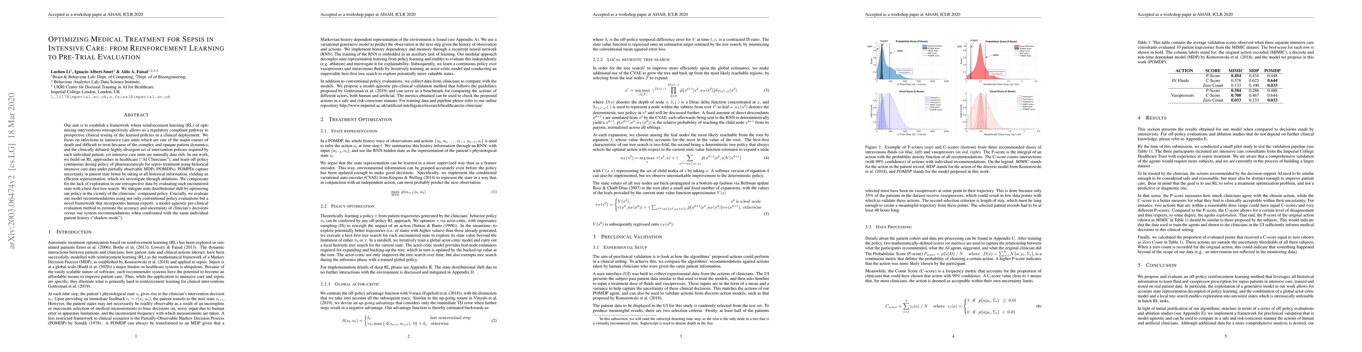 Our aim is to establish a framework where reinforcement learning (RL) of optimizing interventions retrospectively allows us a regulatory compliant pathway to prospective clinical testing of the learned policies in a clinical deployment. We focus on infections in intensive care units which are one of the major causes of death and difficult to treat because of the complex and opaque patient dynamics, and the clinically debated, highly-divergent set of intervention policies required by each individual patient, yet intensive care units are naturally data rich. In our work, we build on RL approaches in healthcare ("AI Clinicians"), and learn off-policy continuous dosing policy of pharmaceuticals for sepsis treatment using historical intensive care data under partially observable MDPs (POMDPs). POMPDs capture uncertainty in patient state better by taking in all historical information, yielding an efficient representation, which we investigate through ablations. We compensate for the lack of exploration in our retrospective data by evaluating each encountered state with a best-first tree search. We mitigate state distributional shift by optimizing our policy in the vicinity of the clinicians' compound policy. Crucially, we evaluate our model recommendations using not only conventional policy evaluations but a novel framework that incorporates human experts: a model-agnostic pre-clinical evaluation method to estimate the accuracy and uncertainty of clinician's decisions versus our system recommendations when confronted with the same individual patient history ("shadow mode").