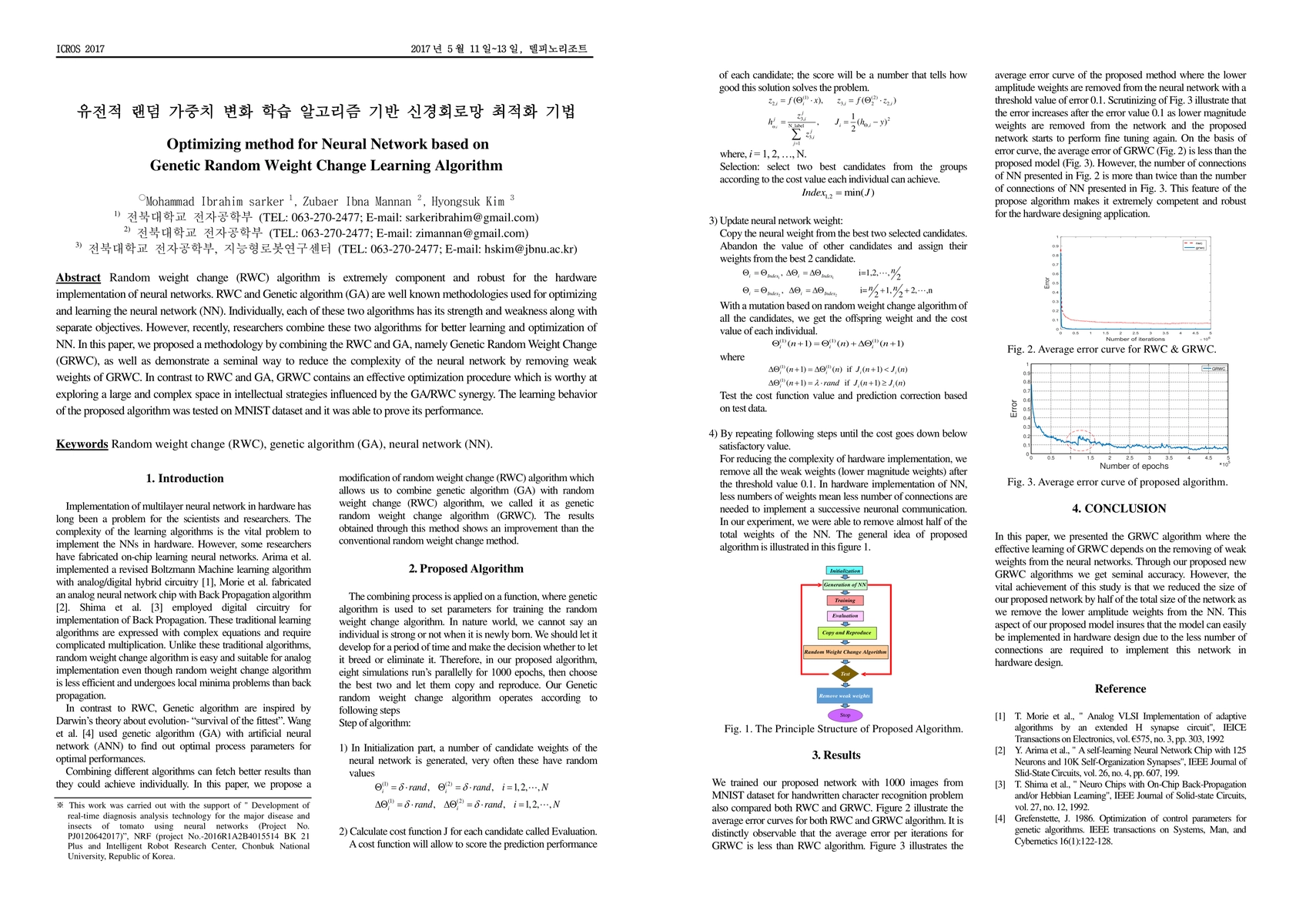 This paper proposes a Genetic Random Weight Change (GRWC) algorithm that combines the Random Weight Change (RWC) and Genetic Algorithm (GA) to optimize neural networks. The GRWC method effectively reduces network complexity by eliminating weak weights and demonstrates superior performance in learning on the MNIST dataset.
