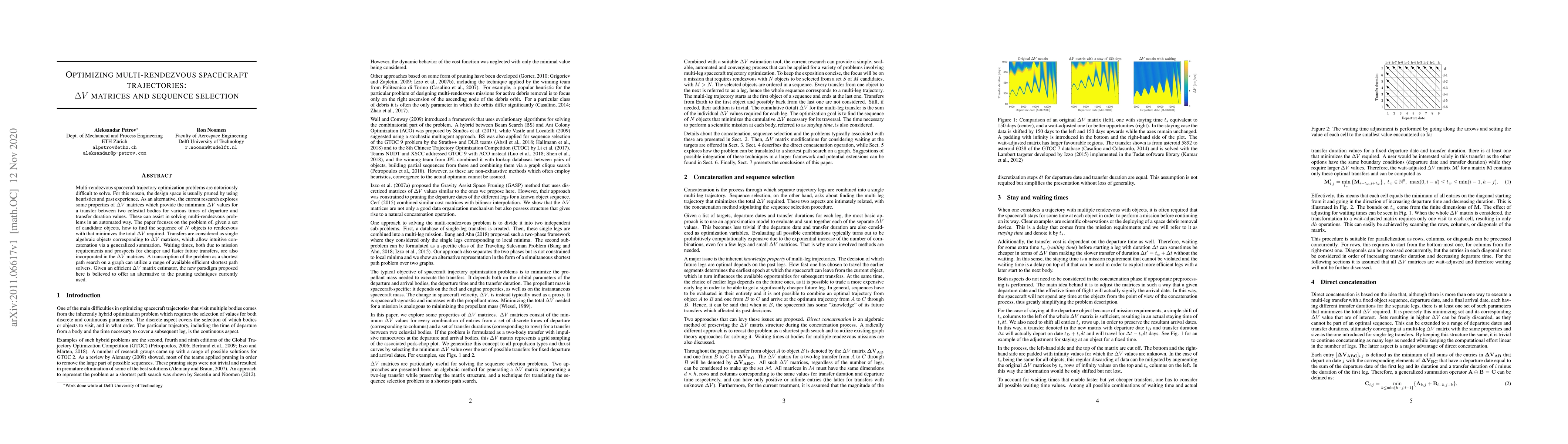 Multi-rendezvous spacecraft trajectory optimization problems are notoriously difficult to solve. For this reason, the design space is usually pruned by using heuristics and past experience. As an alternative, the current research explores some properties of $\Delta V$ matrices which provide the minimum $\Delta V$ values for a transfer between two celestial bodies for various times of departure and transfer duration values. These can assist in solving multi-rendezvous problems in an automated way. The paper focuses on the problem of, given a set of candidate objects, how to find the sequence of $N$ objects to rendezvous with that minimizes the total $\Delta V$ required. Transfers are considered as single algebraic objects corresponding to $\Delta V$ matrices, which allow intuitive concatenation via a generalized summation. Waiting times, both due to mission requirements and prospects for cheaper and faster future transfers, are also incorporated in the $\Delta V$ matrices. A transcription of the problem as a shortest path search on a graph can utilize a range of available efficient shortest path solvers. Given an efficient $\Delta V$ matrix estimator, the new paradigm proposed here is believed to offer an alternative to the pruning techniques currently used.