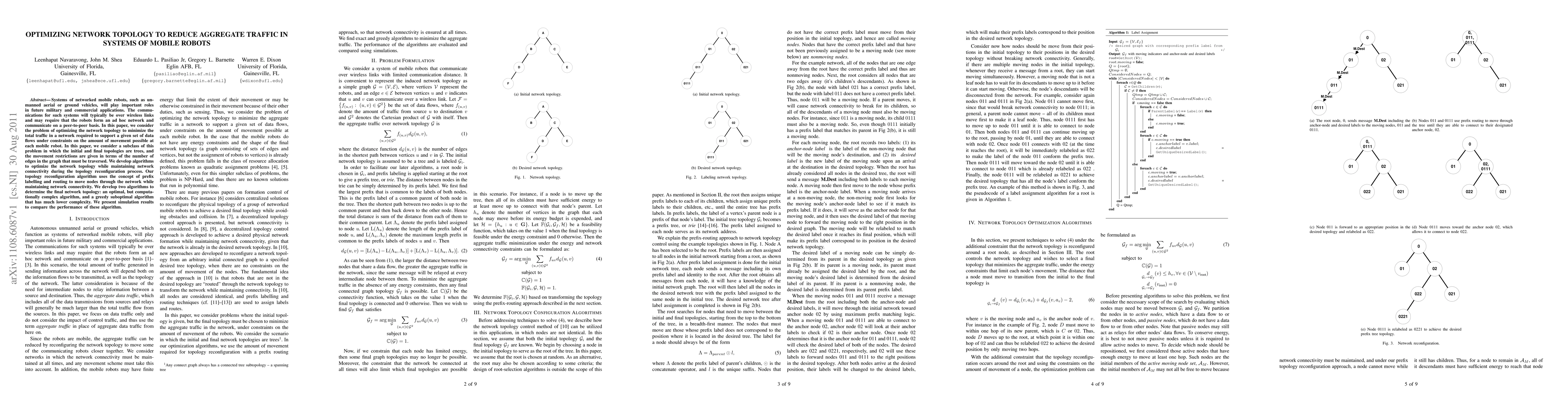 Researchers developed algorithms to optimize network topology for systems of mobile robots, aiming to minimize traffic and maintain connectivity during reconfiguration.