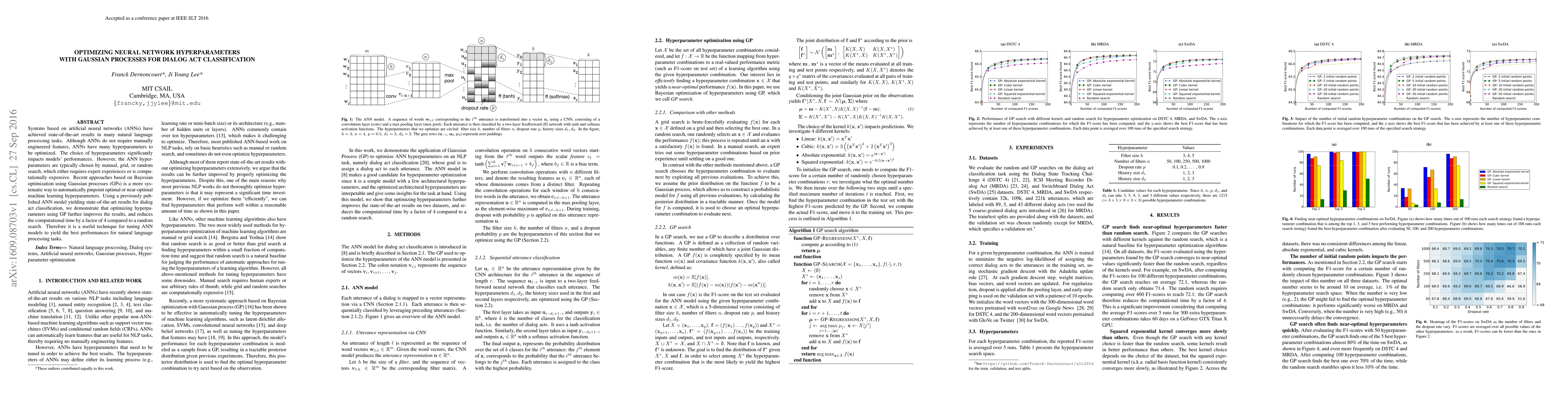 Using Gaussian Processes, researchers optimized neural network hyperparameters for dialog act classification, achieving better results and reduced computational time compared to manual searches.