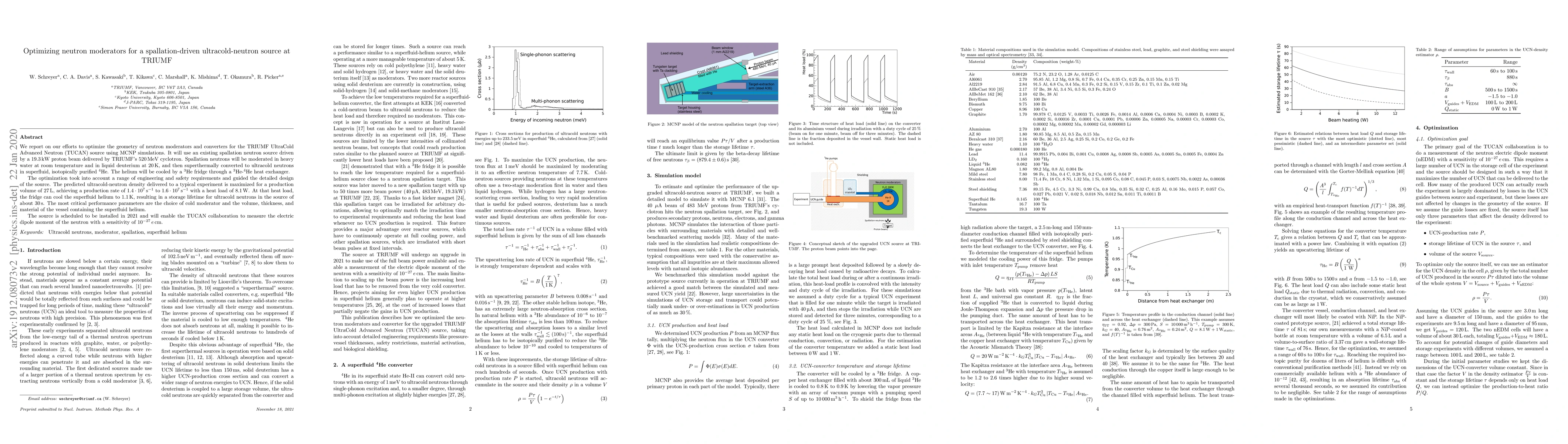 This paper details optimization efforts for the TRIUMF UltraCold Advanced Neutron (TUCAN) source, focusing on neutron moderator geometry using MCNP simulations. The optimized design aims to maximize ultracold neutron density, achieving a production rate of $1.4 \cdot 10^7$ to $1.6 \cdot 10^7$ s$^{-1}$ with a heat load of 8.1 W, enabling the measurement of the neutron's electric dipole moment with high sensitivity.