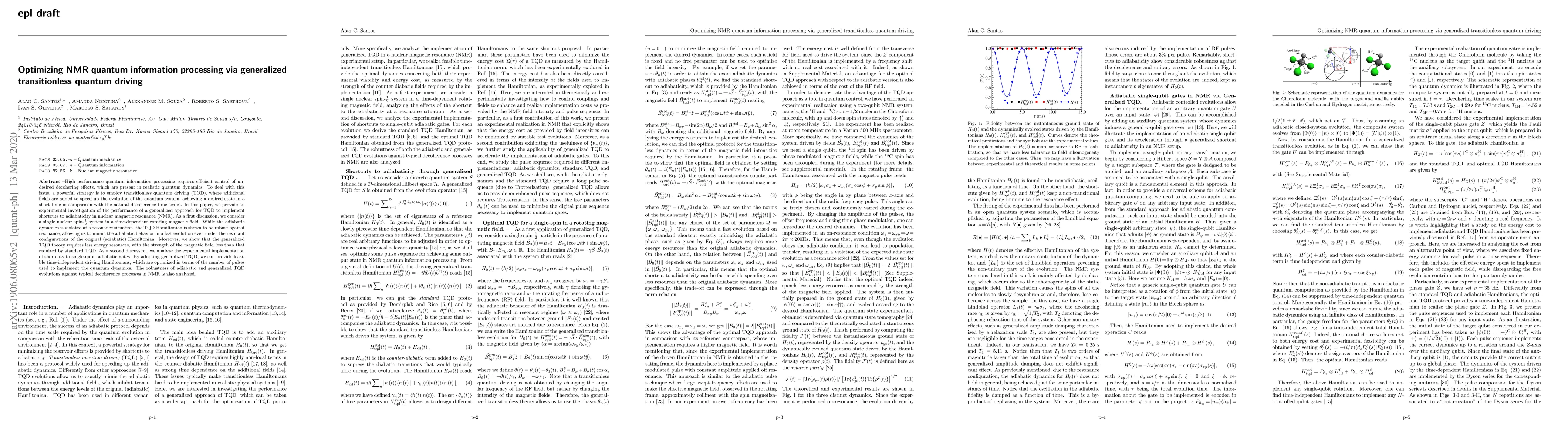 This paper investigates the performance of generalized transitionless quantum driving (TQD) for optimizing NMR quantum information processing, demonstrating its robustness against resonance and reduced energy requirements compared to standard TQD. The study also shows feasible time-independent driving Hamiltonians for implementing single-qubit adiabatic gates, highlighting the method's robustness against decoherence.