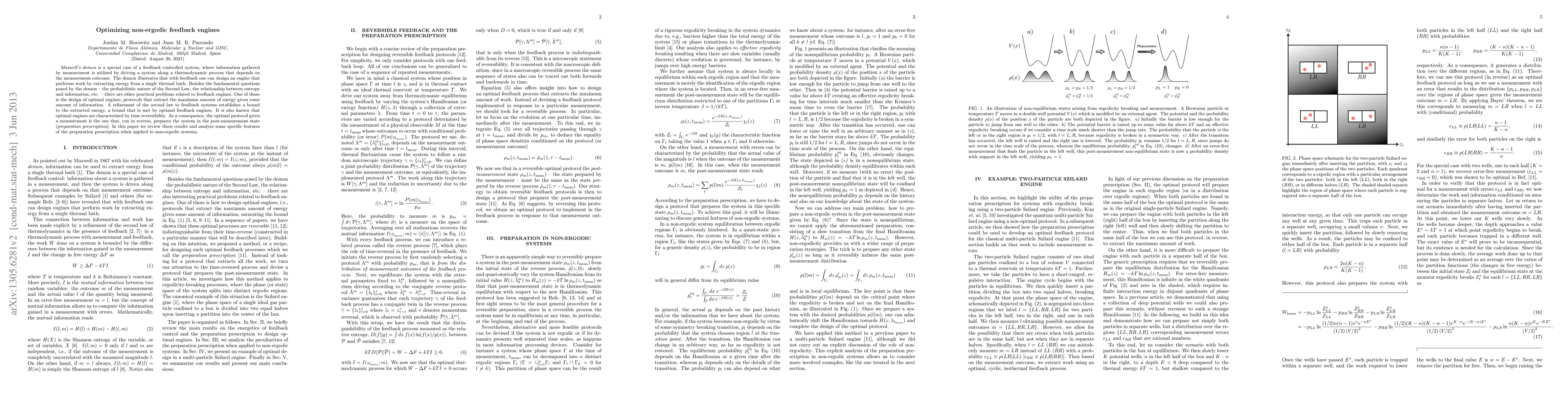Maxwell's demon is a special case of a feedback controlled system, where information gathered by measurement is utilized by driving a system along a thermodynamic process that depends on the measurement outcome. The demon illustrates that with feedback one can design an engine that performs work by extracting energy from a single thermal bath. Besides the fundamental questions posed by the demon - the probabilistic nature of the Second Law, the relationship between entropy and information, etc. - there are other practical problems related to feedback engines. One of those is the design of optimal engines, protocols that extract the maximum amount of energy given some amount of information. A refinement of the second law to feedback systems establishes a bound to the extracted energy, a bound that is met by optimal feedback engines. It is also known that optimal engines are characterized by time reversibility. As a consequence, the optimal protocol given a measurement is the one that, run in reverse, prepares the system in the post-measurement state (preparation prescription). In this paper we review these results and analyze some specific features of the preparation prescription when applied to non-ergodic systems.