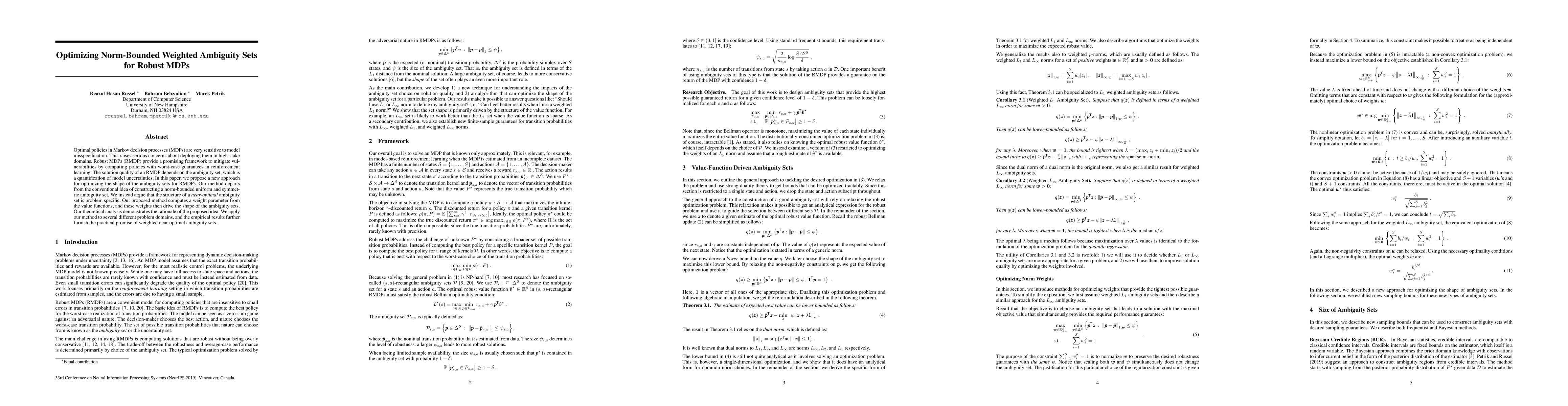 This paper proposes a novel method to optimize norm-bounded weighted ambiguity sets for robust Markov decision processes (RMDPs), arguing that problem-specific ambiguity sets yield better solutions than uniform ones. The method computes weights from value functions to shape the ambiguity sets, supported by theoretical analysis and empirical results across various domains.