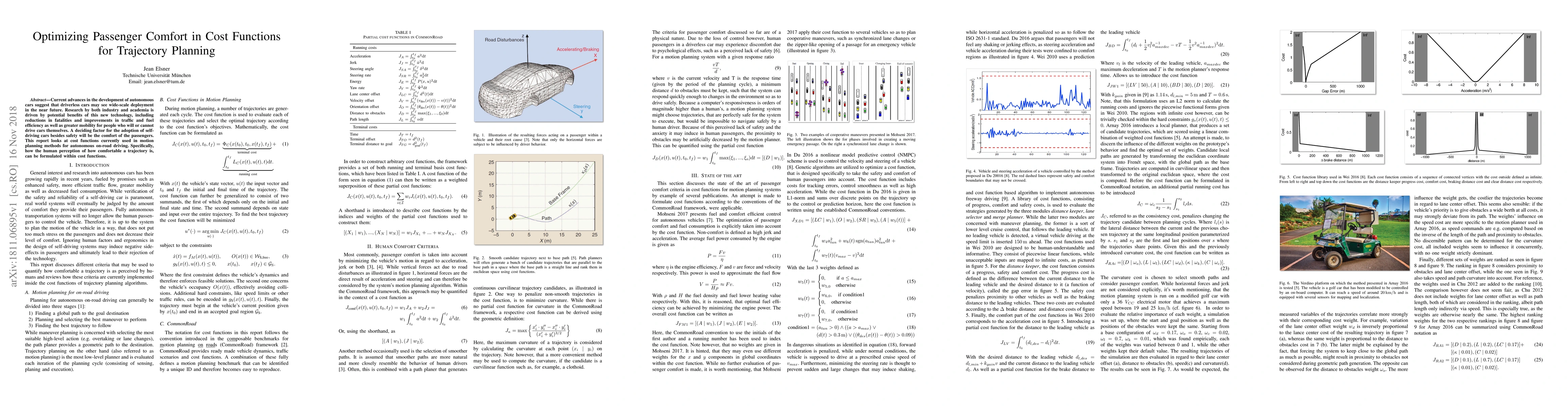 This paper examines current cost functions in autonomous car trajectory planning, focusing on incorporating passenger comfort. It aims to optimize self-driving car adoption by ensuring comfortable rides, alongside safety benefits.