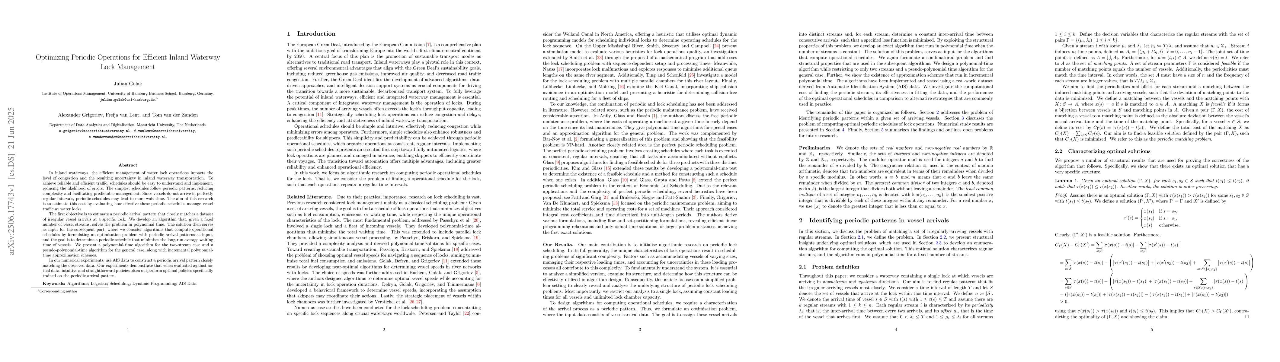 In inland waterways, the efficient management of water lock operations impacts the level of congestion and the resulting uncertainty in inland waterway transportation. To achieve reliable and efficient traffic, schedules should be easy to understand and implement, reducing the likelihood of errors. The simplest schedules follow periodic patterns, reducing complexity and facilitating predictable management. Since vessels do not arrive in perfectly regular intervals, periodic schedules may lead to more wait time. The aim of this research is to estimate this cost by evaluating how effective these periodic schedules manage vessel traffic at water locks. The first objective is to estimate a periodic arrival pattern that closely matches a dataset of irregular vessel arrivals at a specific lock. We develop an algorithm that, given a fixed number of vessel streams, solves the problem in polynomial time. The solution then serves as input for the subsequent part, where we consider algorithms that compute operational schedules by formulating an optimisation problem with periodic arrival patterns as input, and the goal is to determine a periodic schedule that minimises the long-run average waiting time of vessels. We present a polynomial-time algorithm for the two-stream case and a pseudo-polynomial-time algorithm for the general case, along with incremental polynomial-time approximation schemes. In our numerical experiments, use AIS data to construct a periodic arrival pattern closely matching the observed data. Our experiments demonstrate that when evaluated against actual data, intuitive and straightforward policies often outperform optimal policies specifically trained on the periodic arrival pattern.