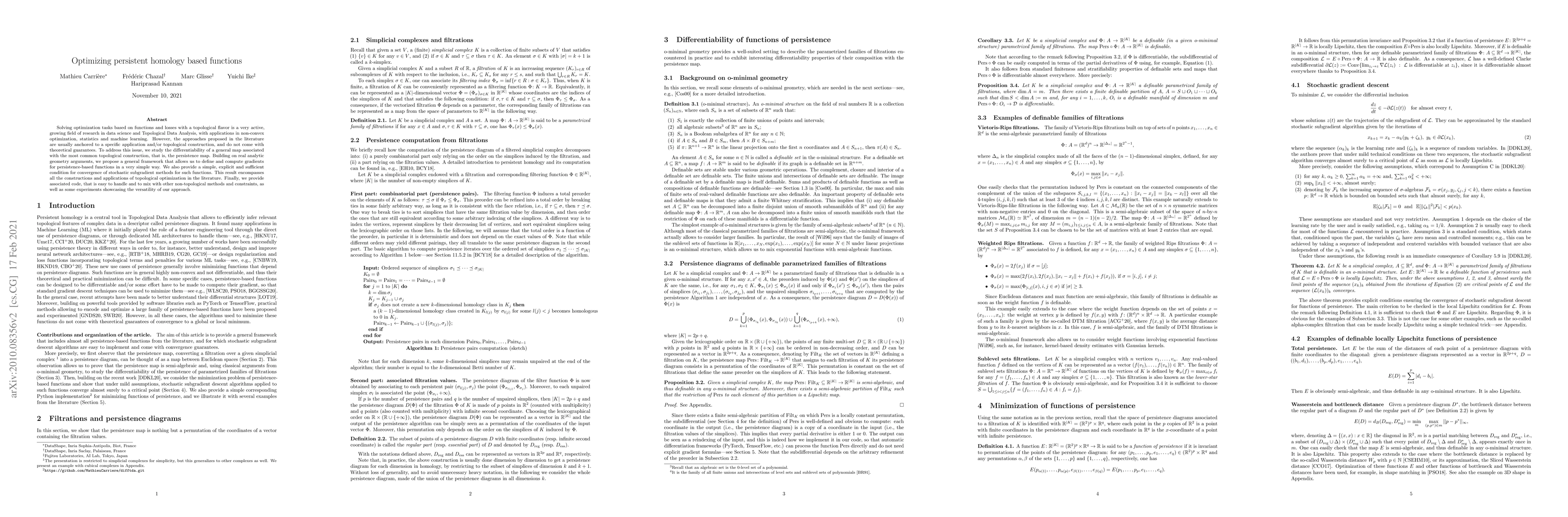 This paper proposes a new framework for optimizing functions based on persistence maps, providing theoretical guarantees and simplifying computations. It enables the convergence of stochastic subgradient methods for topological optimization tasks.