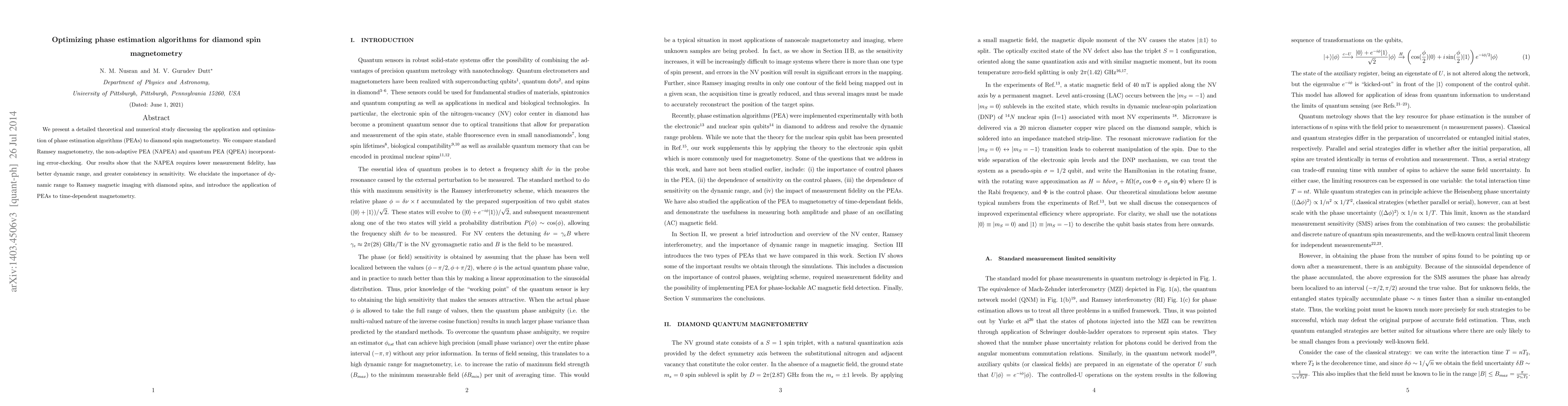 We present a detailed theoretical and numerical study discussing the application and optimization of phase estimation algorithms (PEAs) to diamond spin magnetometry. We compare standard Ramsey magnetometry, the non-adaptive PEA (NAPEA) and quantum PEA (QPEA) incorporating error-checking. Our results show that the NAPEA requires lower measurement fidelity, has better dynamic range, and greater consistency in sensitivity. We elucidate the importance of dynamic range to Ramsey magnetic imaging with diamond spins, and introduce the application of PEAs to time-dependent magnetometry.