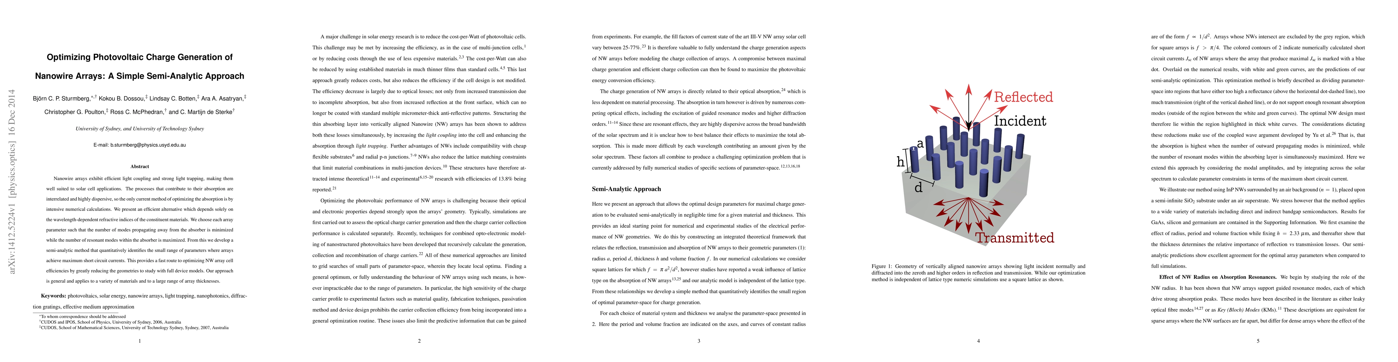 Researchers developed a simple semi-analytic approach to optimize photovoltaic charge generation in nanowire arrays, maximizing short circuit currents while minimizing energy loss.