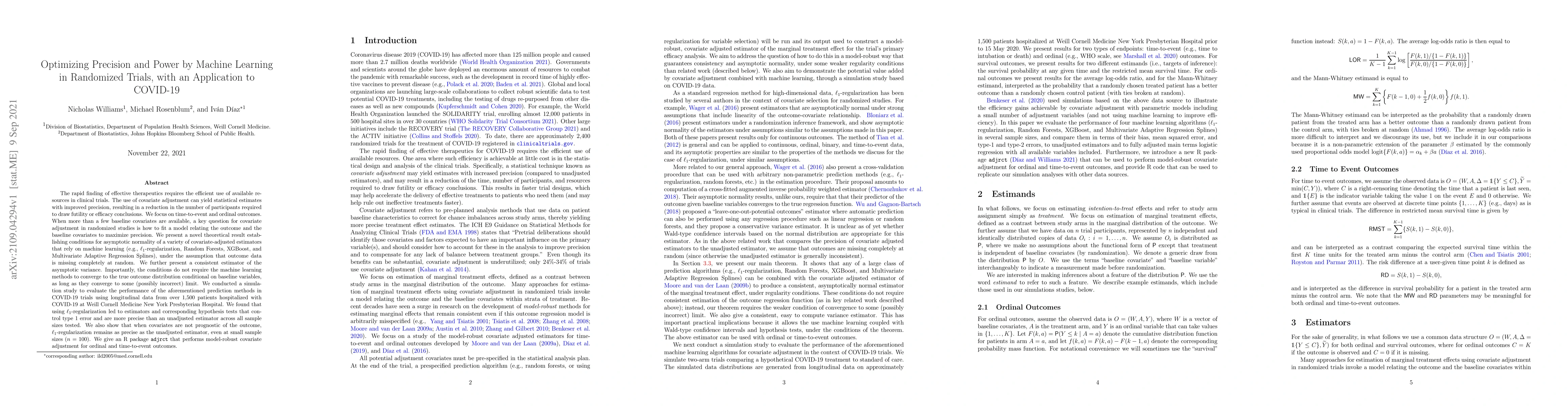 A new method using machine learning techniques improves precision and power in clinical trials for COVID-19 treatments by adjusting for baseline covariates, reducing the need for participants to draw conclusions about efficacy or futility.
