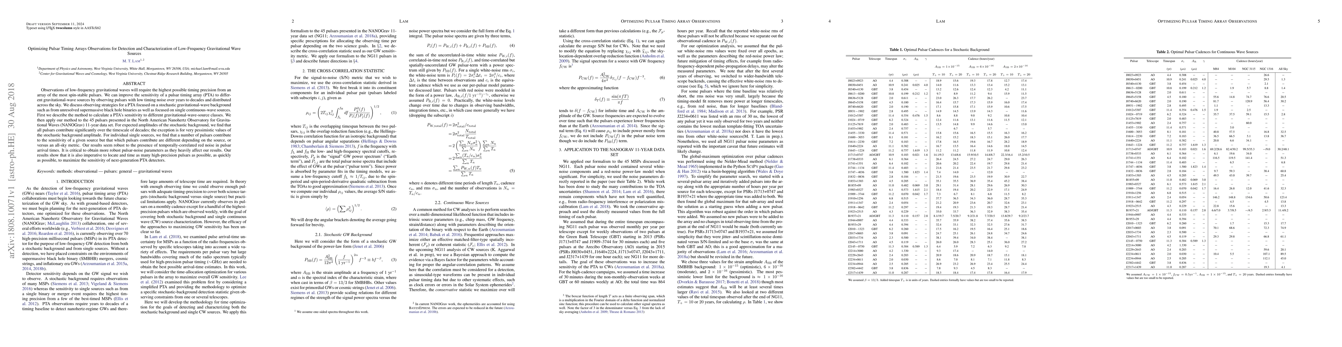Observations of low-frequency gravitational waves will require the highest possible timing precision from an array of the most spin-stable pulsars. We can improve the sensitivity of a pulsar timing array (PTA) to different gravitational-wave sources by observing pulsars with low timing noise over years to decades and distributed across the sky. We discuss observing strategies for a PTA focused on a stochastic gravitational-wave background such as from unresolved supermassive black hole binaries as well as focused on single continuous-wave sources. First we describe the method to calculate a PTA's sensitivity to different gravitational-wave-source classes. We then apply our method to the 45 pulsars presented in the North American Nanohertz Observatory for Gravitational Waves (NANOGrav) 11-year data set. For expected amplitudes of the stochastic background, we find that all pulsars contribute significantly over the timescale of decades; the exception is for very pessimistic values of the stochastic background amplitude. For individual single sources, we find that a number of pulsars contribute to the sensitivity of a given source but that which pulsars contribute are different depending on the source, or versus an all-sky metric. Our results seem robust to the presence of temporally-correlated red noise in pulsar arrival times. It is critical to obtain more robust pulsar-noise parameters as they heavily affect our results. Our results show that it is also imperative to locate and time as many high-precision pulsars as possible, as quickly as possible, to maximize the sensitivity of next-generation PTA detectors.