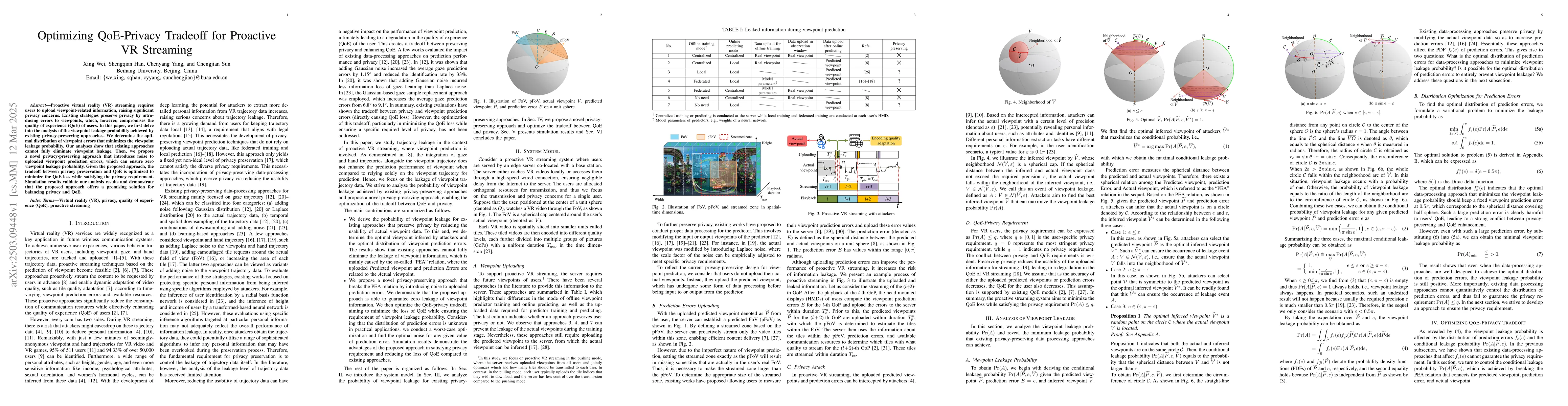This paper analyzes existing privacy-preserving strategies for proactive VR streaming, identifying their inability to fully eliminate viewpoint leakage while compromising user experience. It proposes a novel approach that introduces noise to viewpoint prediction errors, achieving zero leakage probability and optimizing the tradeoff between privacy and QoE to minimize loss while satisfying privacy requirements.