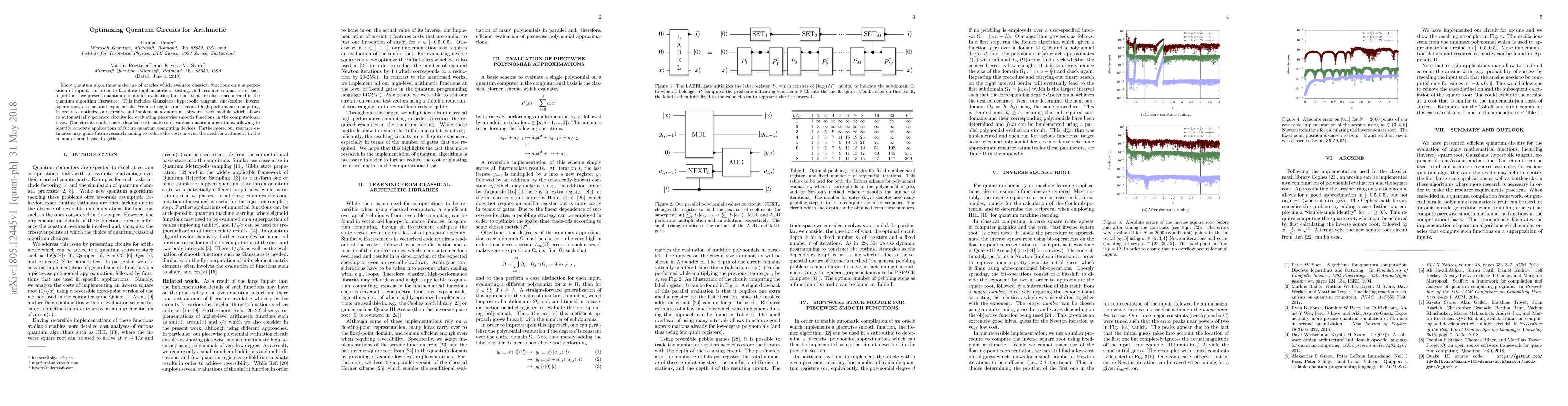 This paper presents optimized quantum circuits for evaluating common arithmetic functions, leveraging classical high-performance computing techniques. The proposed circuits enable detailed cost analyses for quantum algorithms, aiding in the identification of practical applications for future quantum devices.