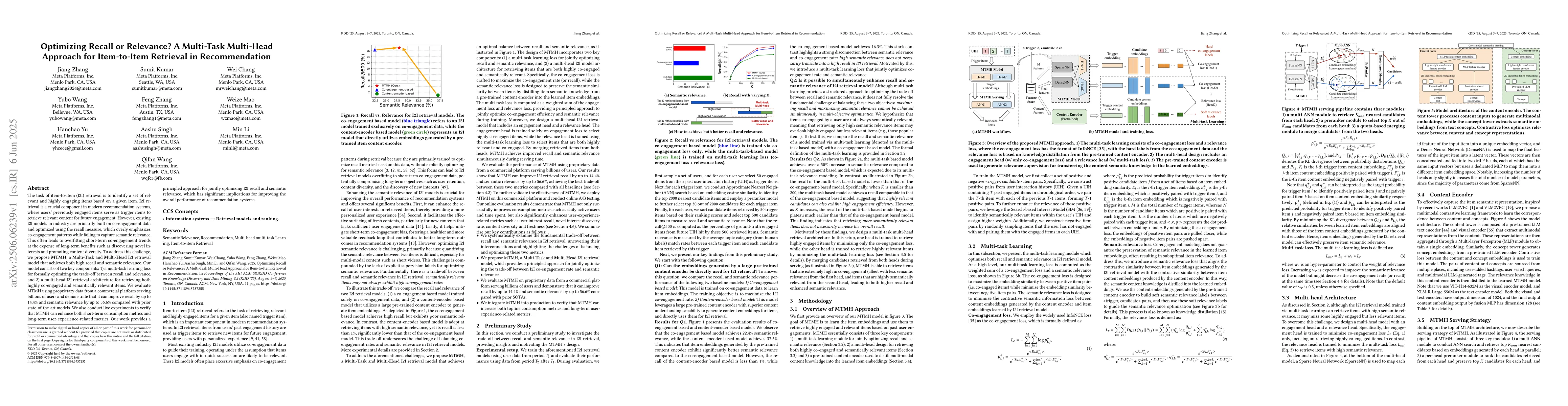 A new model called MTMH improves item-to-item retrieval in recommendation systems by balancing recall and semantic relevance, leading to up to 14.4% increase in recall and 56.6% increase in relevance.