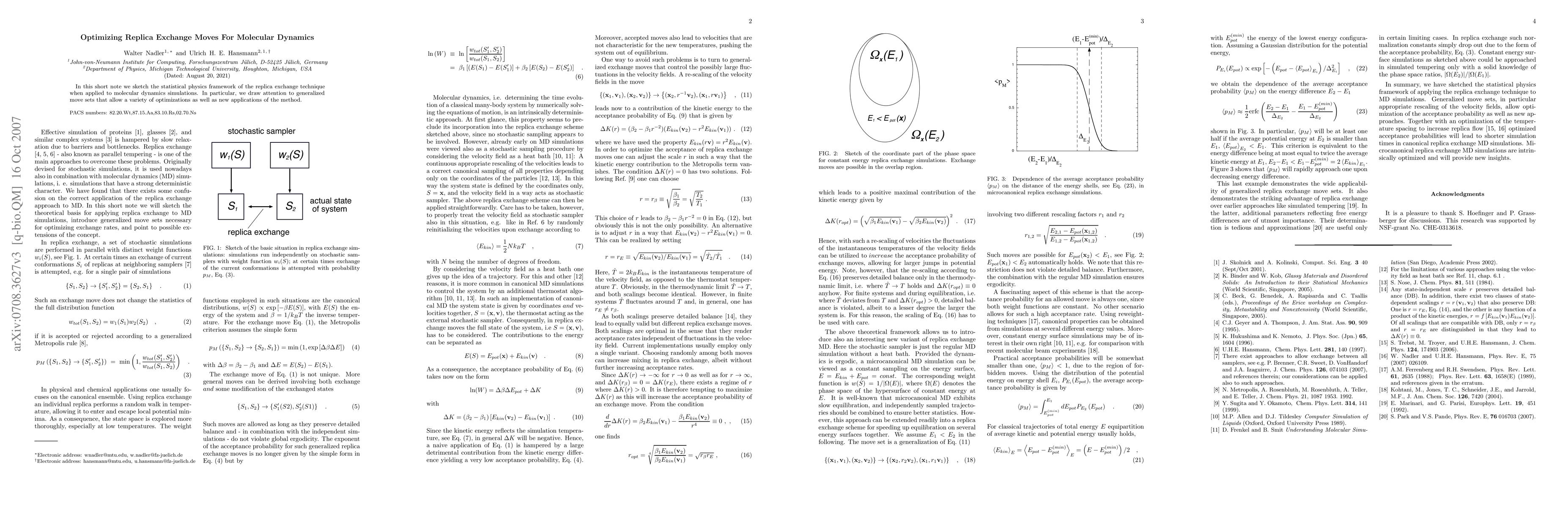 The paper introduces generalized replica exchange move sets and velocity field scaling techniques to optimize acceptance probabilities in molecular dynamics simulations.