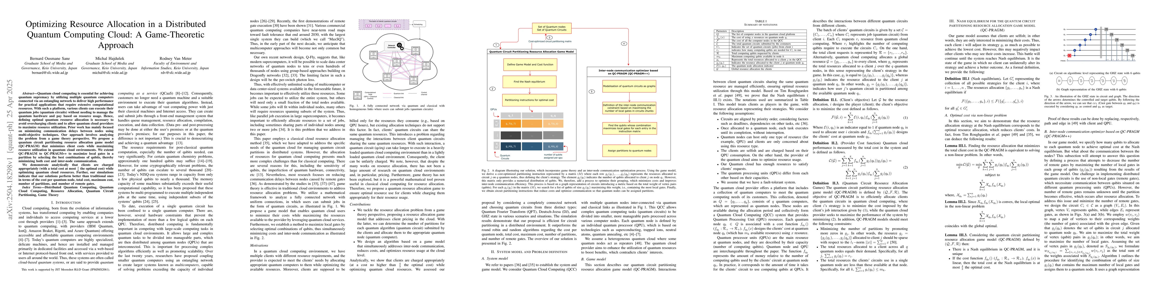 Researchers propose a game-theoretic approach to optimize resource allocation in quantum cloud computing, aiming to minimize client costs while maximizing resource utilization.