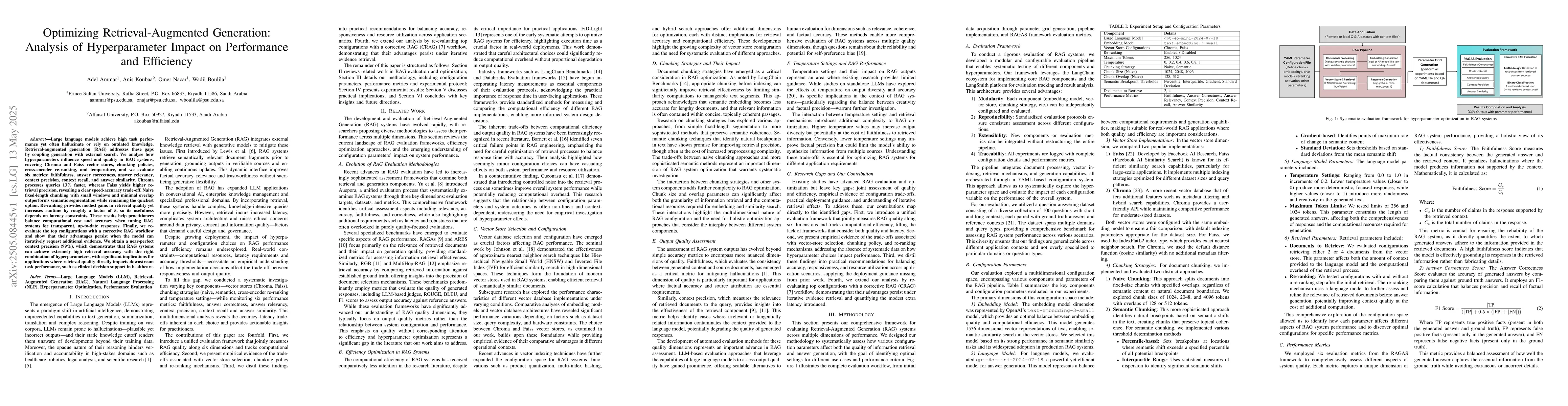 Research paper optimizes retrieval-augmented generation (RAG) systems by analyzing hyperparameter impact on performance and efficiency, finding that certain configurations provide a near-perfect balance between speed and accuracy in generating high-quality responses.