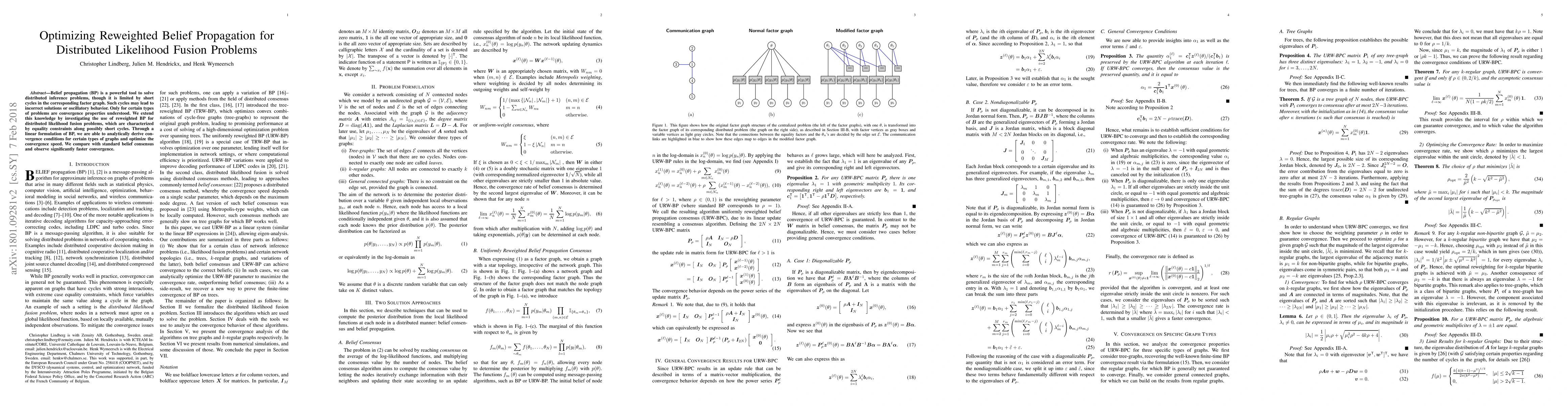 This paper optimizes belief propagation for distributed likelihood fusion problems, achieving faster convergence compared to standard methods.