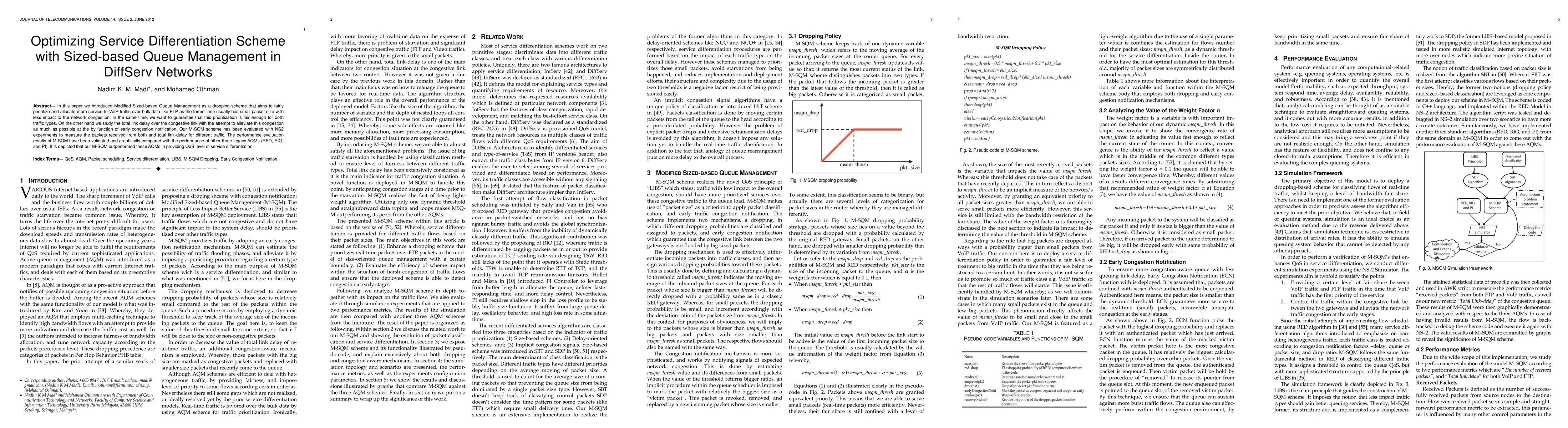 In this paper we introduced Modified Sized-based Queue Management as a dropping scheme that aims to fairly prioritize and allocate more service to VoIP traffic over bulk data like FTP as the former one usually has small packet size with less impact to the network congestion. In the same time, we want to guarantee that this prioritization is fair enough for both traffic types. On the other hand we study the total link delay over the congestive link with the attempt to alleviate this congestion as much as possible at the by function of early congestion notification. Our M-SQM scheme has been evaluated with NS2 experiments to measure the packets received from both and total link-delay for different traffic. The performance evaluation results of M-SQM have been validated and graphically compared with the performance of other three legacy AQMs (RED, RIO, and PI). It is depicted that our M-SQM outperformed these AQMs in providing QoS level of service differentiation.