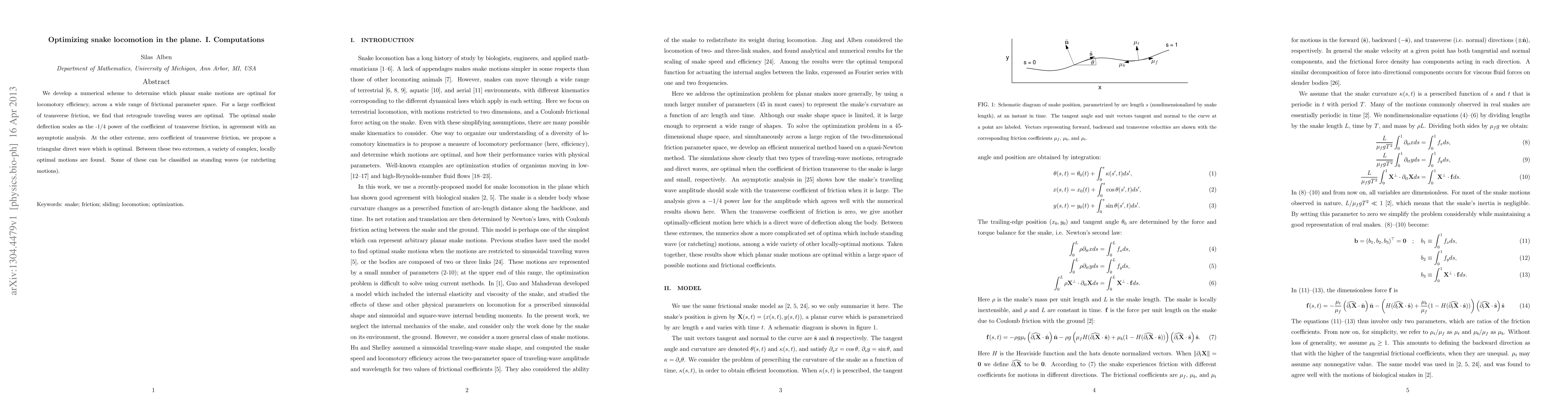 Researchers developed a numerical scheme to optimize snake locomotion in different friction conditions, finding that retrograde traveling waves are optimal for high friction and triangular direct waves are optimal for low friction.