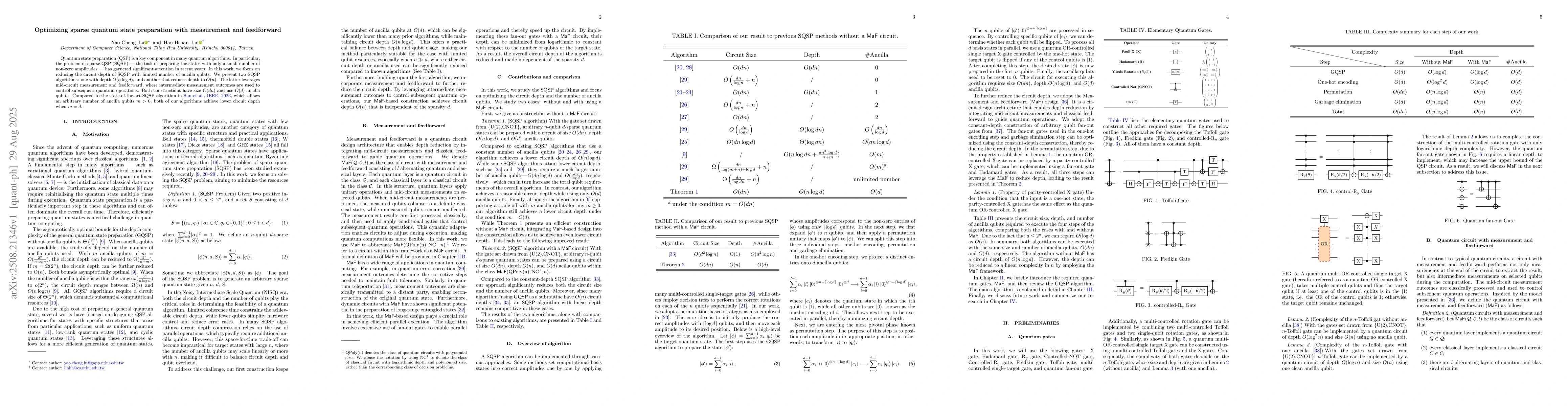 Quantum state preparation (QSP) is a key component in many quantum algorithms. In particular, the problem of sparse QSP (SQSP) $\unicode{x2013}$ the task of preparing the states with only a small number of non-zero amplitudes $\unicode{x2013}$ has garnered significant attention in recent years. In this work, we focus on reducing the circuit depth of SQSP with limited number of ancilla qubits. We present two SQSP algorithms: one with depth $O(n\log d)$, and another that reduces depth to $O(n)$. The latter leverages mid-circuit measurement and feedforward, where intermediate measurement outcomes are used to control subsequent quantum operations. Both constructions have size $O(dn)$ and use $O(d)$ ancilla qubits. Compared to the state-of-the-art SQSP algorithm in arXiv:2108.06150, which allows an arbitrary number of ancilla qubits $m>0$, both of our algorithms achieve lower circuit depth when $m=d$.