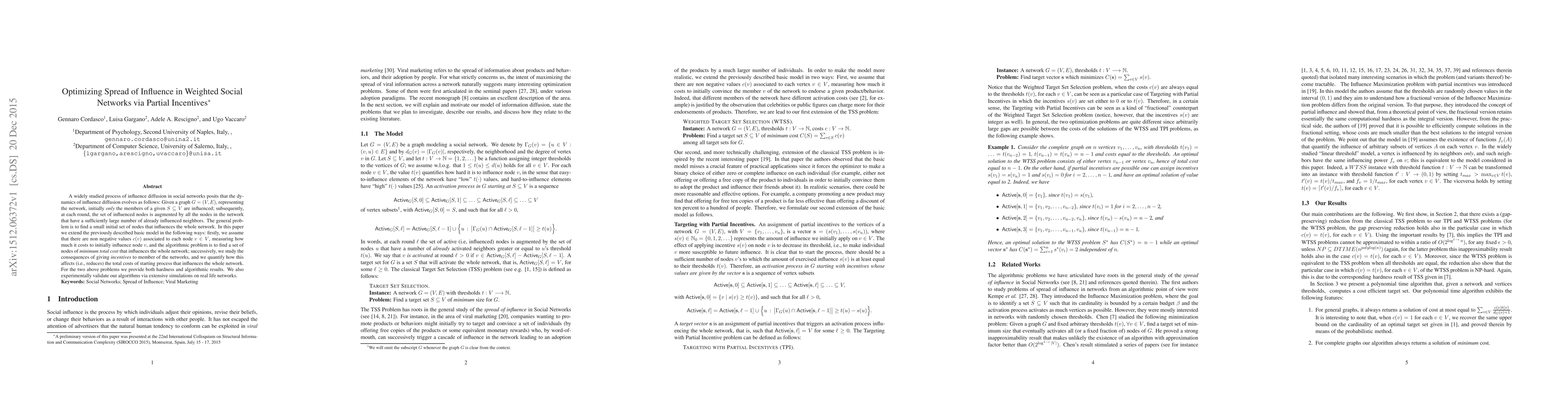 This paper investigates how to minimize the cost of influencing a network by giving incentives to its members, optimizing spread of influence in weighted social networks.