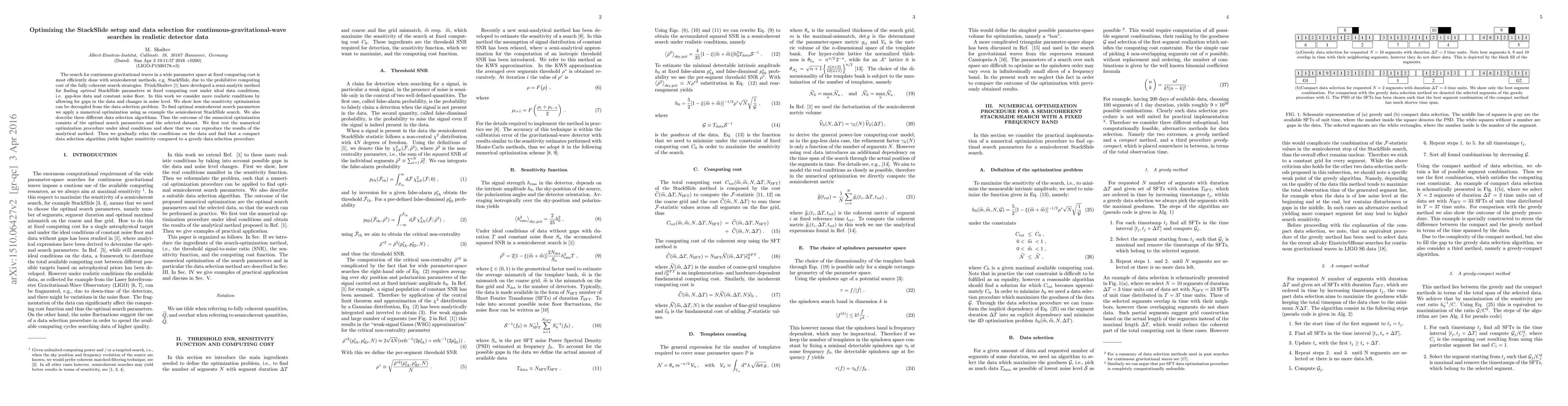 This paper improves the StackSlide method for continuous gravitational wave searches in realistic detector data, introducing a numerical optimization procedure for semicoherent search parameters and data selection. It decouples sensitivity optimization from data selection and finds that a compact data selection algorithm enhances sensitivity over a greedy procedure, even under non-ideal conditions with data gaps and noise level variations.