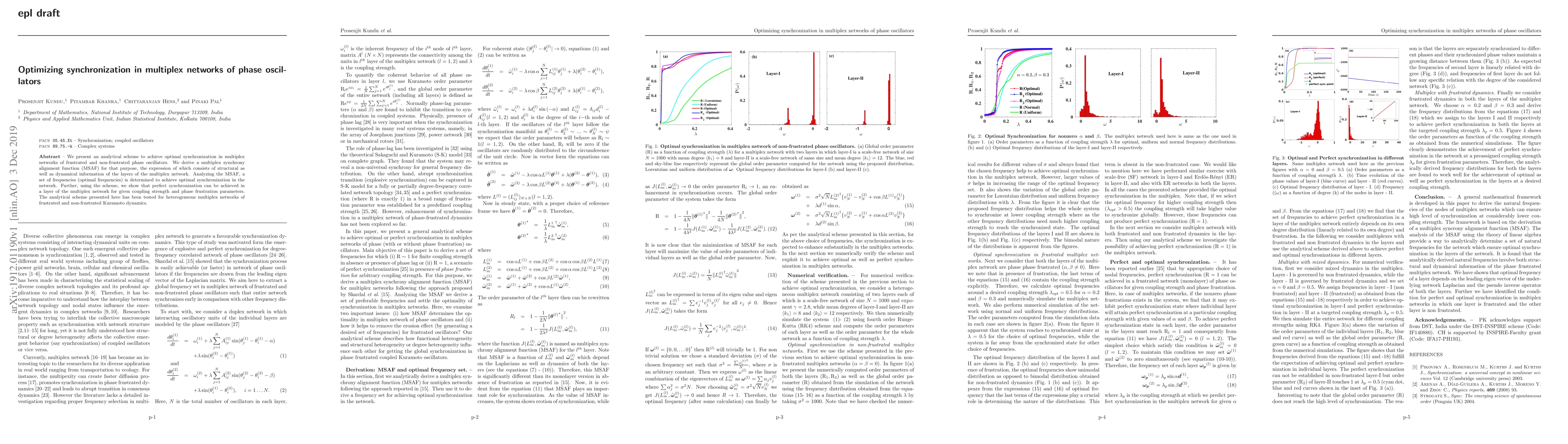 This paper proposes an analytical method to optimize synchronization in multiplex networks of phase oscillators, introducing a multiplex synchrony alignment function (MSAF) that incorporates structural and dynamical information. The method determines optimal frequencies to achieve perfect synchronization under given coupling strength and phase frustration parameters.