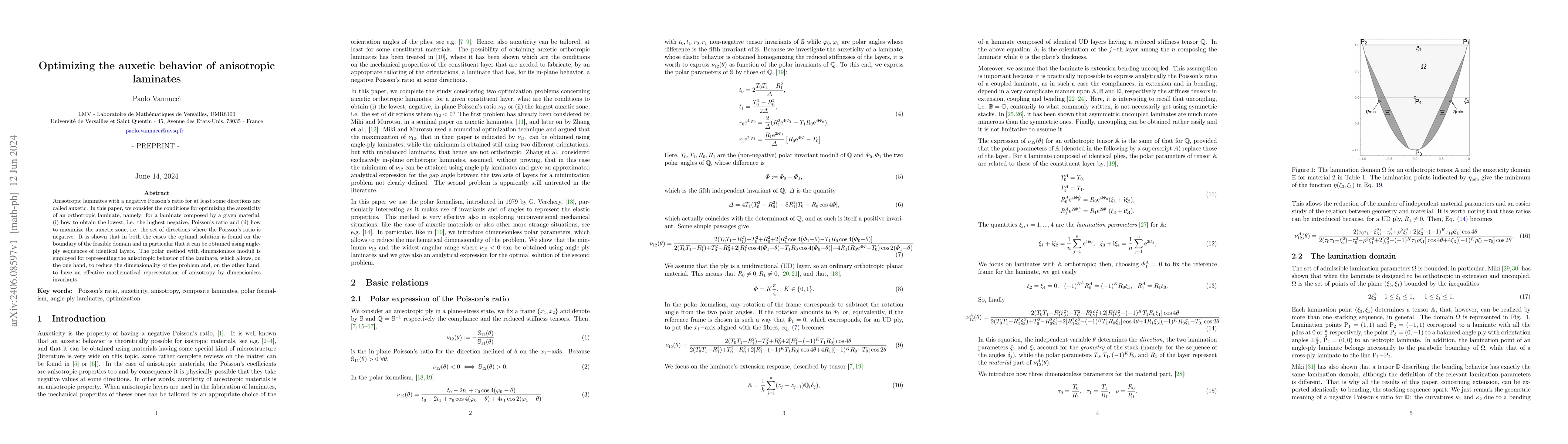 This paper explores optimizing the auxetic behavior of orthotropic laminates, focusing on achieving the highest negative Poisson's ratio and enlarging the auxetic zone. Optimal solutions are found using angle-ply sequences, leveraging a polar method with dimensionless moduli to simplify and mathematically represent anisotropy.
