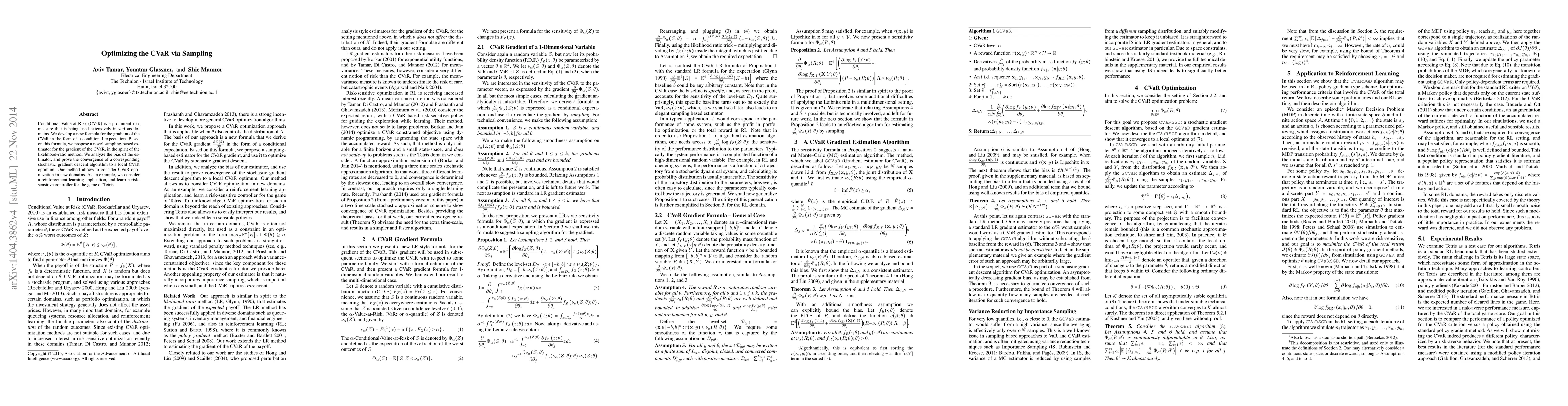 Researchers developed a new method to optimize Conditional Value at Risk (CVaR) using sampling, allowing for efficient risk analysis in various domains. The approach enables the convergence of stochastic gradient descent algorithms to local CVaR optima, with applications in reinforcement learning and game playing.