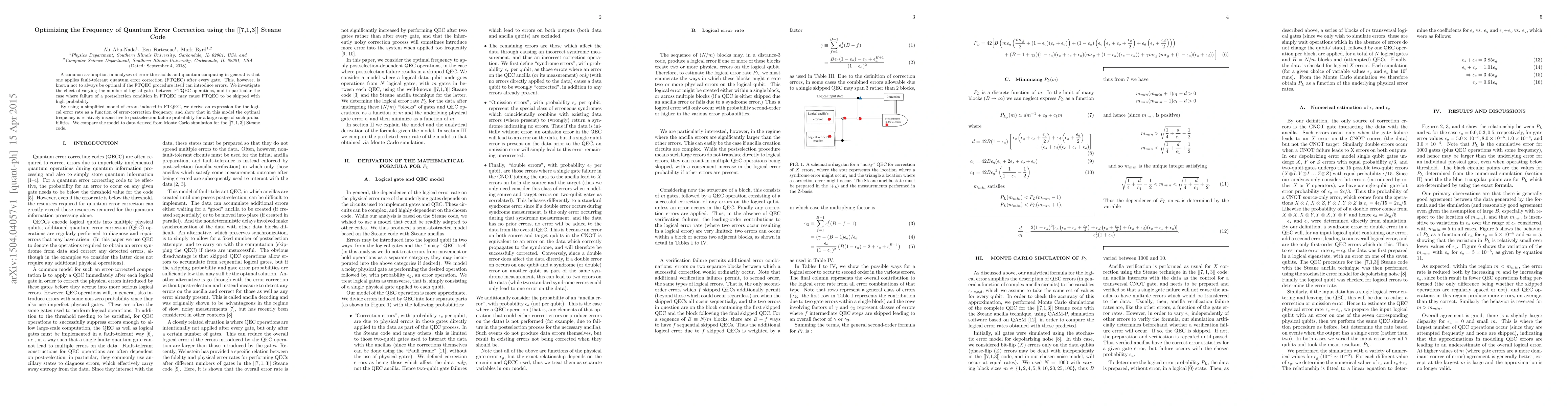 This paper explores optimizing the frequency of quantum error correction (FTQEC) using the $[[7,1,3]]$ Steane code, finding that the optimal frequency is relatively stable across a range of postselection failure probabilities. The study derives a logical error rate expression and validates it with Monte Carlo simulations.