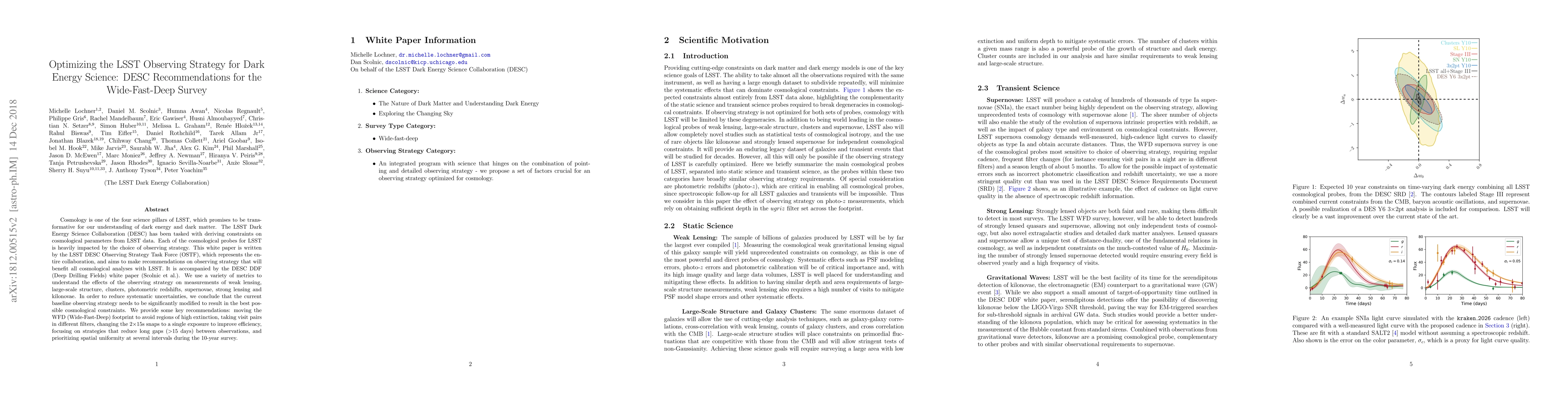 This paper by the LSST DESC Observing Strategy Task Force recommends modifications to the LSST observing strategy to optimize dark energy science, including shifting the WFD footprint, altering filter visit pairs, and reducing long observation gaps to improve cosmological parameter constraints.