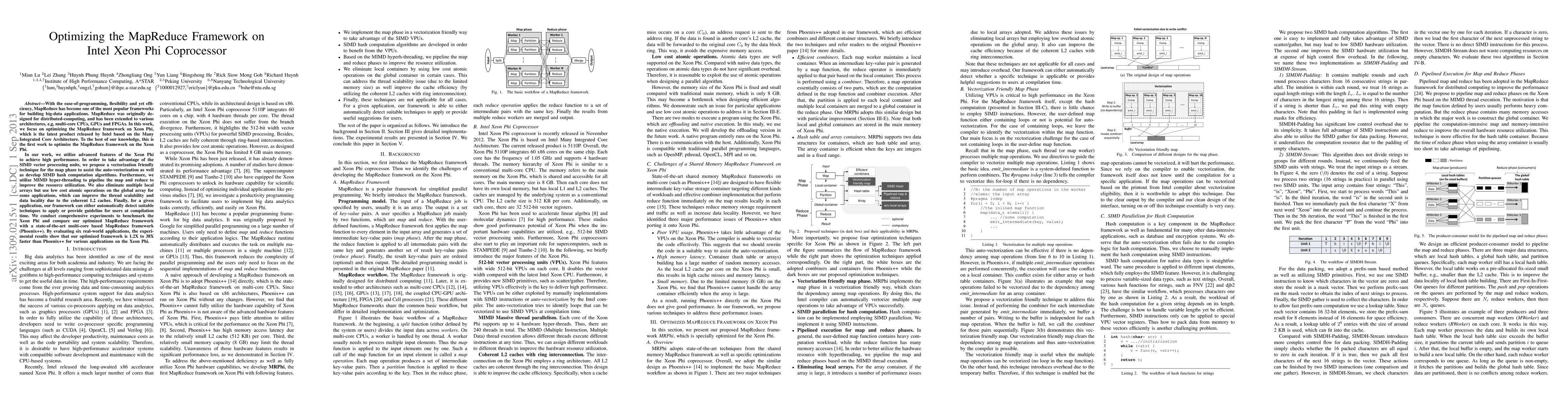 This research optimizes the MapReduce framework for Intel's Xeon Phi coprocessor, leveraging its SIMD vector processing units and MIMD hyper-threading to enhance performance. The optimized framework achieves significant speedups (1.2X to 38X) over a state-of-the-art multi-core based MapReduce framework, demonstrating substantial improvements for big-data applications on Xeon Phi.