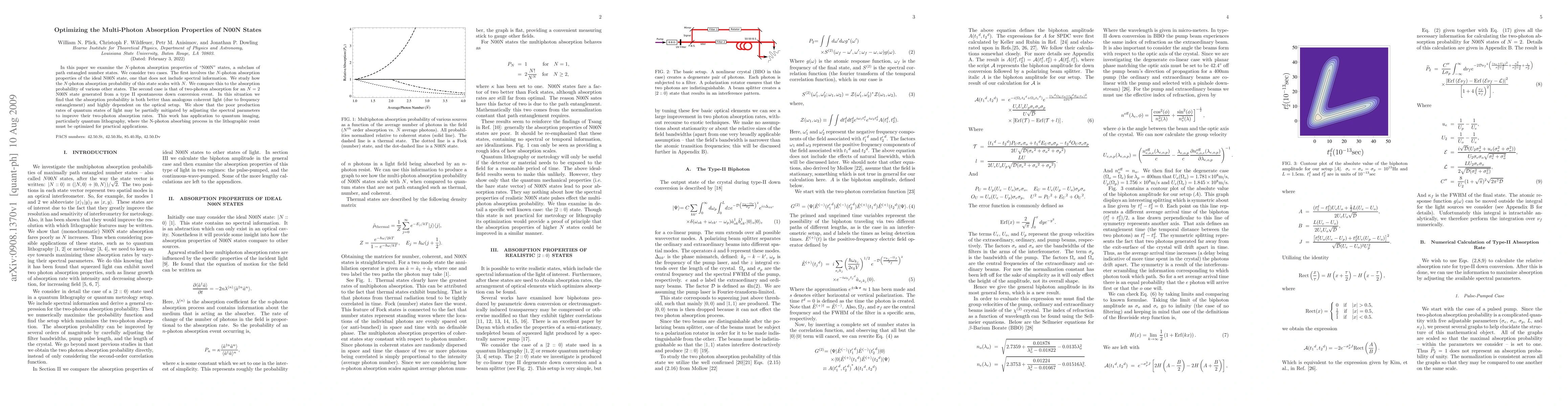 This paper explores the N-photon absorption properties of N00N states, comparing ideal N00N states with other states and analyzing two-photon absorption in N00N states generated via spontaneous down conversion. It finds that optimizing spectral parameters can enhance absorption rates, which is crucial for applications in quantum imaging and quantum lithography.