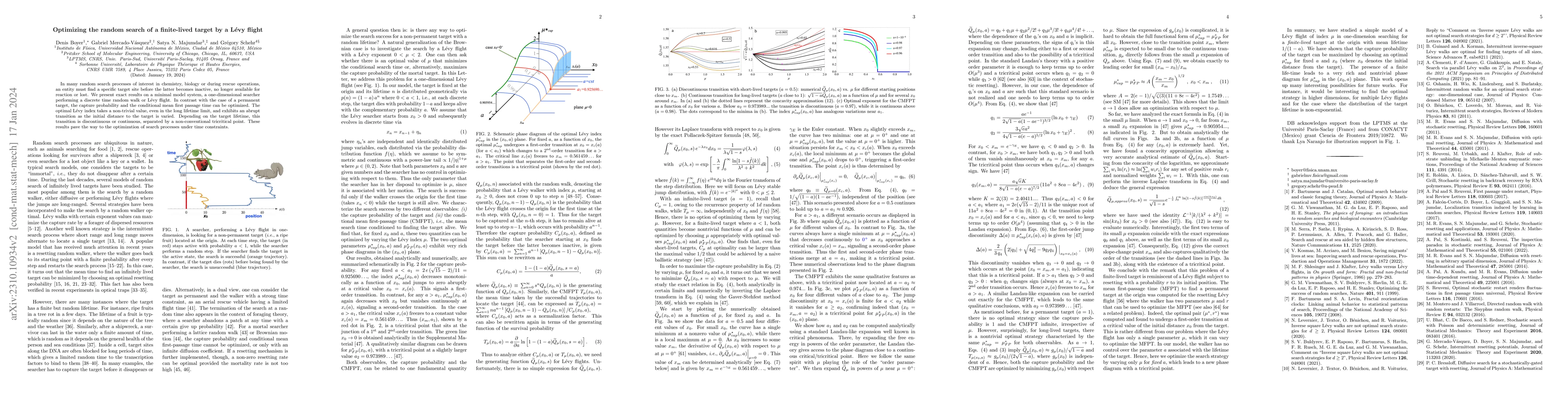 In many random search processes of interest in chemistry, biology or during rescue operations, an entity must find a specific target site before the latter becomes inactive, no longer available for reaction or lost. We present exact results on a minimal model system, a one-dimensional searcher performing a discrete time random walk or L\'evy flight. In contrast with the case of a permanent target, the capture probability and the conditional mean first passage time can be optimized. The optimal L\'evy index takes a non-trivial value, even in the long lifetime limit, and exhibits an abrupt transition as the initial distance to the target is varied. Depending on the target lifetime, this transition is discontinuous or continuous, separated by a non-conventional tricritical point. These results pave the way to the optimization of search processes under time constraints.