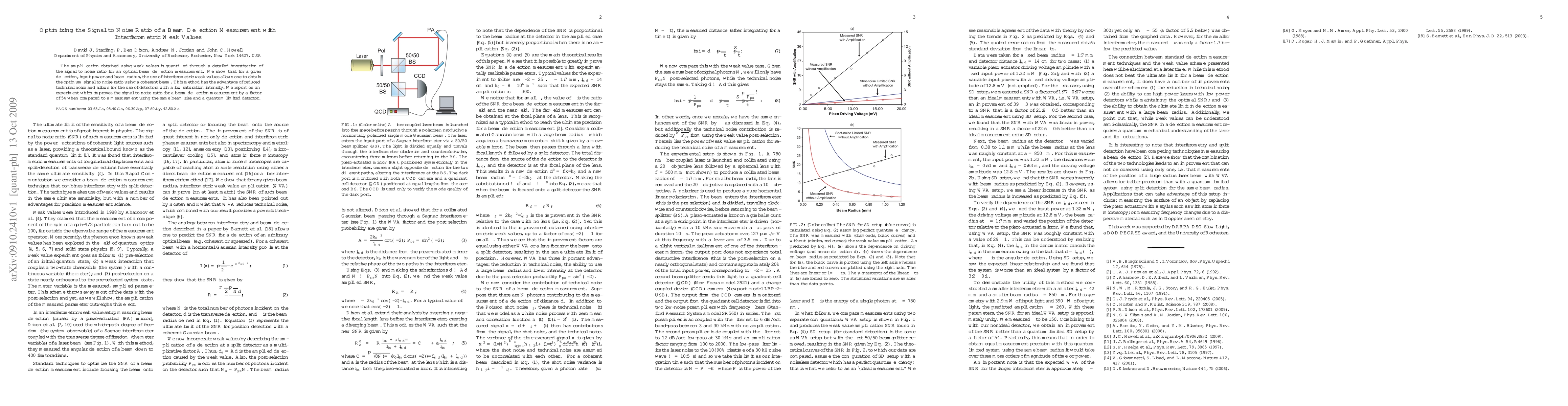 This research demonstrates that interferometric weak values can optimize the signal to noise ratio in beam deflection measurements, achieving a 54-fold improvement over traditional methods, while minimizing technical noise and detector saturation.