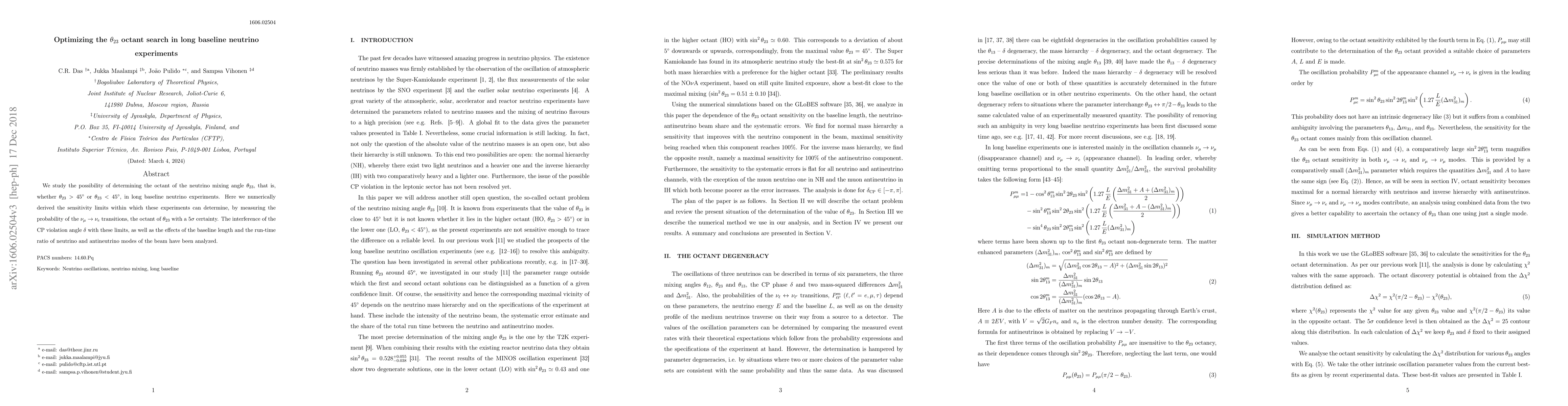 This paper investigates the sensitivity of long baseline neutrino experiments to determine the octant of the neutrino mixing angle $\theta_{23}$ by measuring $\nu_{\mu}\to \nu_{e}$ transitions, analyzing the impact of CP violation, baseline length, and beam run-time ratios on this determination.