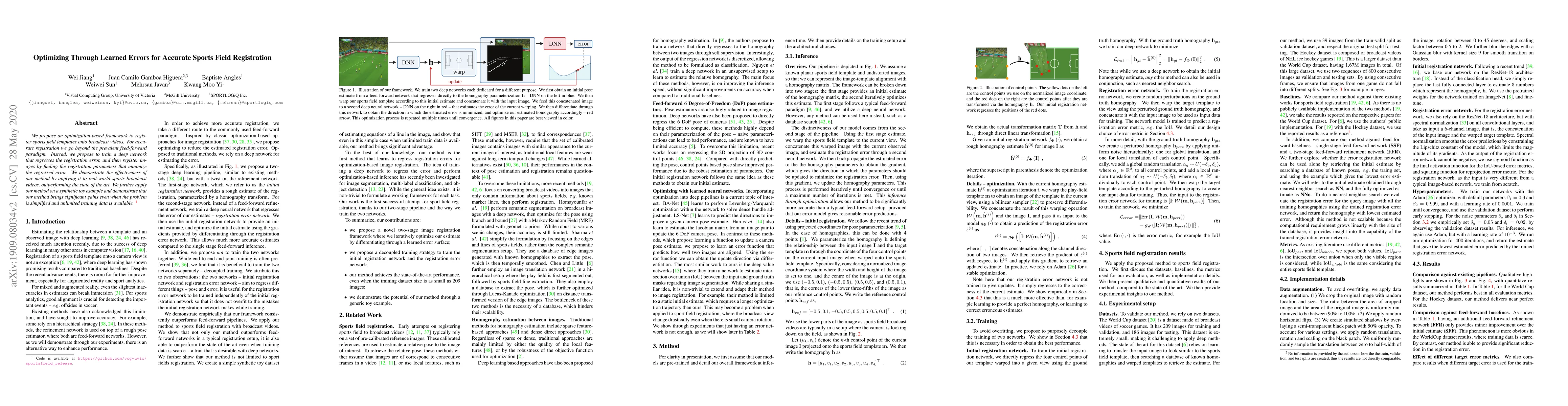 We propose an optimization-based framework to register sports field templates onto broadcast videos. For accurate registration we go beyond the prevalent feed-forward paradigm. Instead, we propose to train a deep network that regresses the registration error, and then register images by finding the registration parameters that minimize the regressed error. We demonstrate the effectiveness of our method by applying it to real-world sports broadcast videos, outperforming the state of the art. We further apply our method on a synthetic toy example and demonstrate that our method brings significant gains even when the problem is simplified and unlimited training data is available.