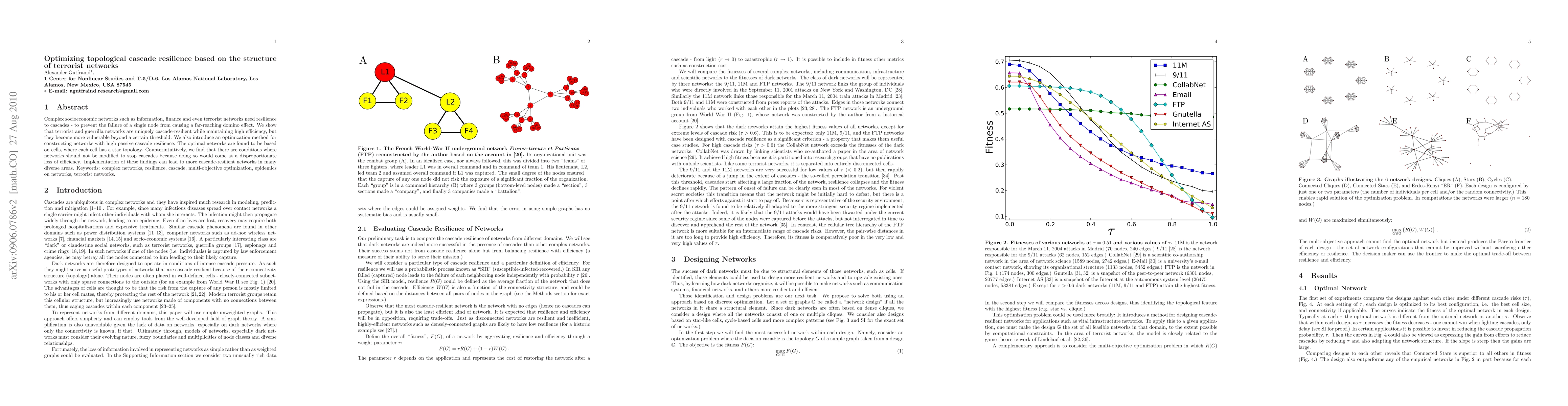 Complex socioeconomic networks such as information, finance and even terrorist networks need resilience to cascades - to prevent the failure of a single node from causing a far-reaching domino effect. We show that terrorist and guerrilla networks are uniquely cascade-resilient while maintaining high efficiency, but they become more vulnerable beyond a certain threshold. We also introduce an optimization method for constructing networks with high passive cascade resilience. The optimal networks are found to be based on cells, where each cell has a star topology. Counterintuitively, we find that there are conditions where networks should not be modified to stop cascades because doing so would come at a disproportionate loss of efficiency. Implementation of these findings can lead to more cascade-resilient networks in many diverse areas.