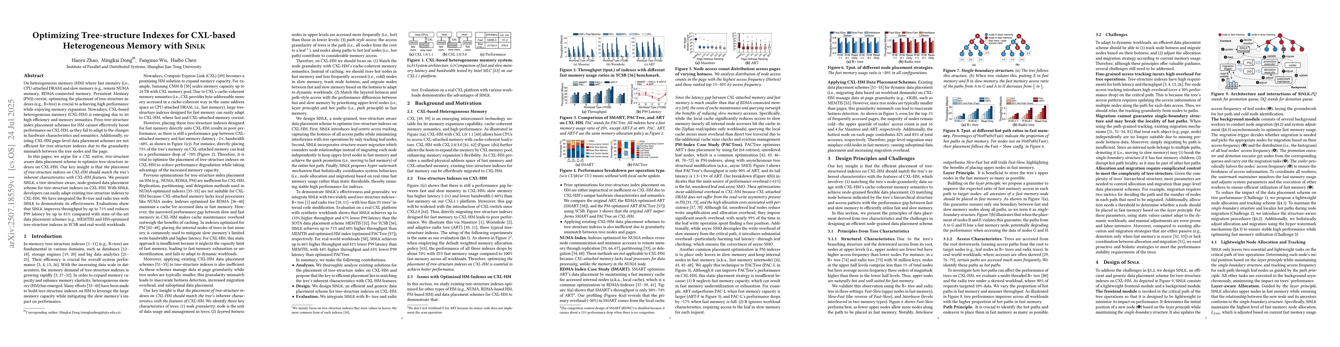 On heterogeneous memory (HM) where fast memory (i.e., CPU-attached DRAM) and slow memory (e.g., remote NUMA memory, RDMA-connected memory, Persistent Memory (PM)) coexist, optimizing the placement of tree-structure indexes (e.g., B+tree) is crucial to achieving high performance while enjoying memory expansion. Nowadays, CXL-based heterogeneous memory (CXL-HM) is emerging due to its high efficiency and memory semantics. Prior tree-structure index placement schemes for HM cannot effectively boost performance on CXL-HM, as they fail to adapt to the changes in hardware characteristics and semantics. Additionally, existing CXL-HM page-level data placement schemes are not efficient for tree-structure indexes due to the granularity mismatch between the tree nodes and the page. In this paper, we argue for a CXL native, tree-structure aware data placement scheme to optimize tree-structure indexes on CXL-HM. Our key insight is that the placement of tree-structure indexes on CXL-HM should match the tree's inherent characteristics with CXL-HM features. We present SINLK, a tree-structure aware, node-grained data placement scheme for tree-structure indexes on CXL-HM. With SINLK, developers can easily adapt existing tree-structure indexes to CXL-HM. We have integrated the B+tree and radix tree with SINLK to demonstrate its effectiveness. Evaluations show that SINLK improves throughput by up to 71% and reduces P99 latency by up to 81% compared with state-of-the-art data placement schemes (e.g., MEMTIS) and HM-optimized tree-structure indexes in YCSB and real-world workloads.