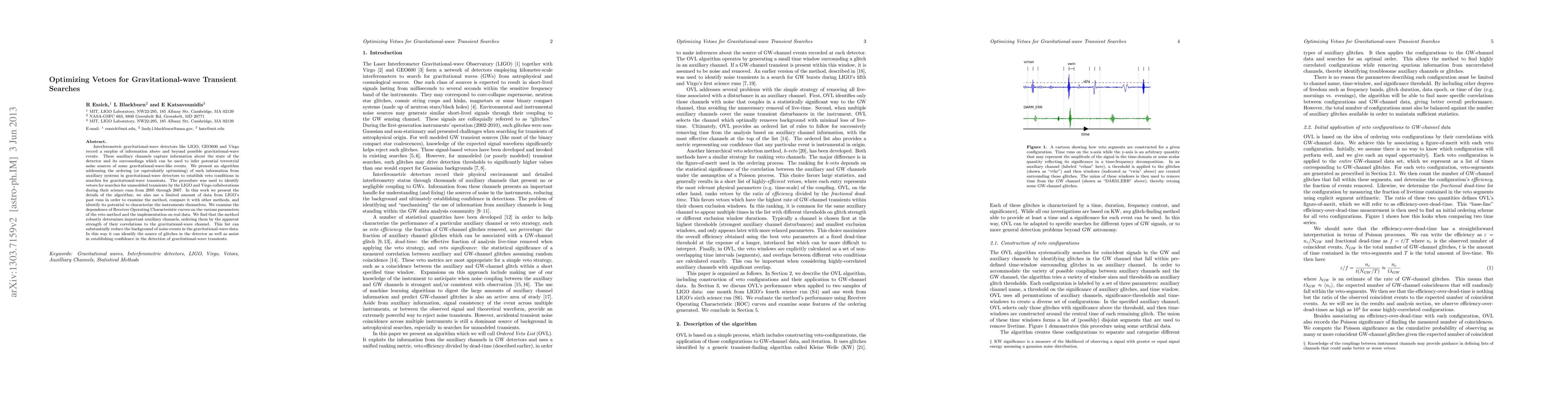 This paper presents an algorithm for optimizing vetoes in gravitational-wave transient searches by ordering auxiliary detector channels to identify terrestrial noise sources. The method was tested on data from LIGO and Virgo, showing robust identification of noise channels and potential to reduce false detections.