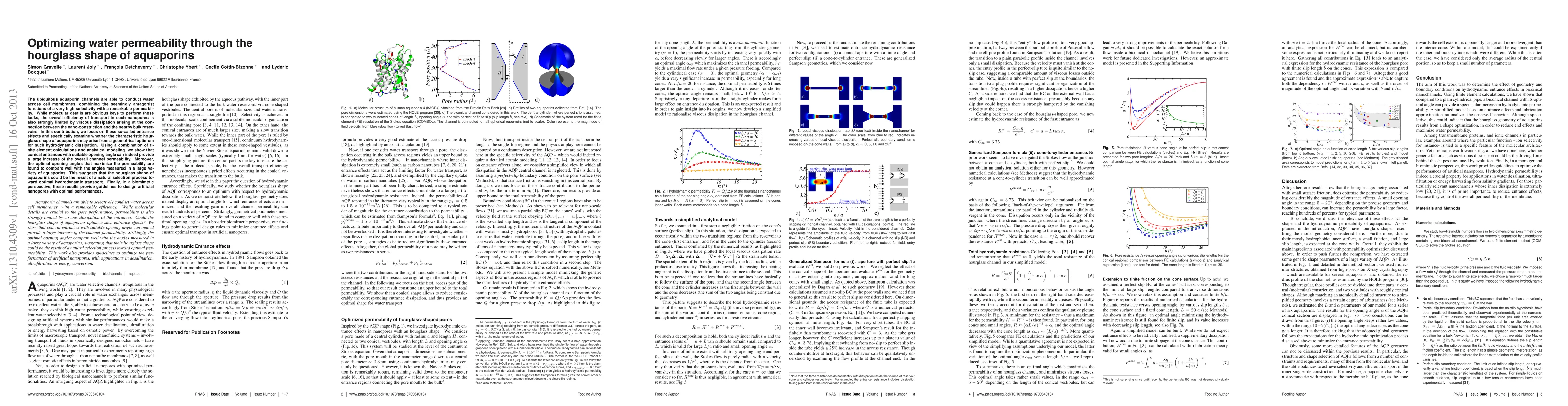 The paper demonstrates that aquaporin channels' hourglass shape optimizes water permeability by minimizing viscous dissipation, and analytical modeling supports the natural selection of this shape for efficient transport, providing insights for designing artificial nanopores.